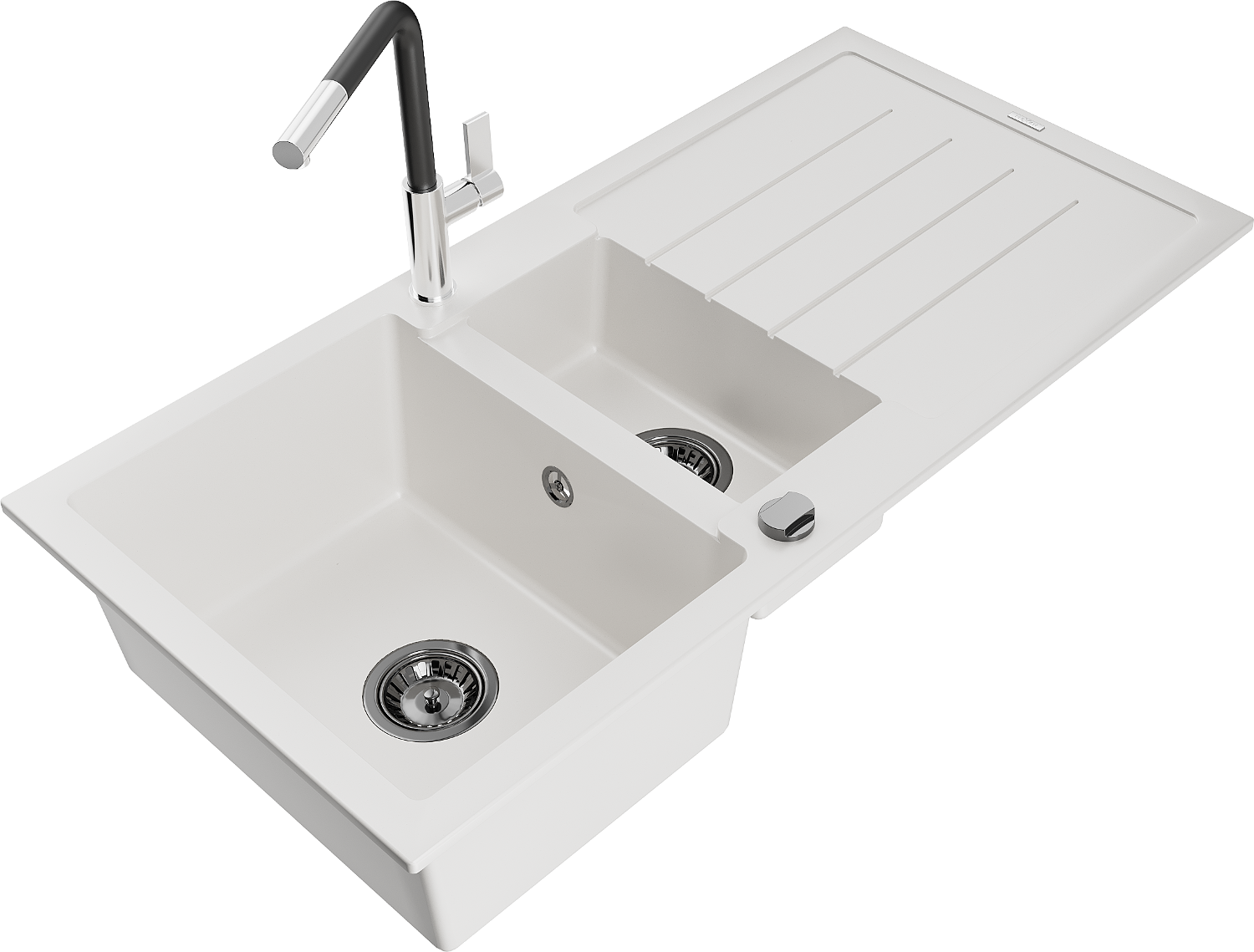 Mexen Andres 1,5 kamrás gránit mosogató csepegtetővel és Flora konyhai csapteleppel, fehér - 6515-20-670401-07-B