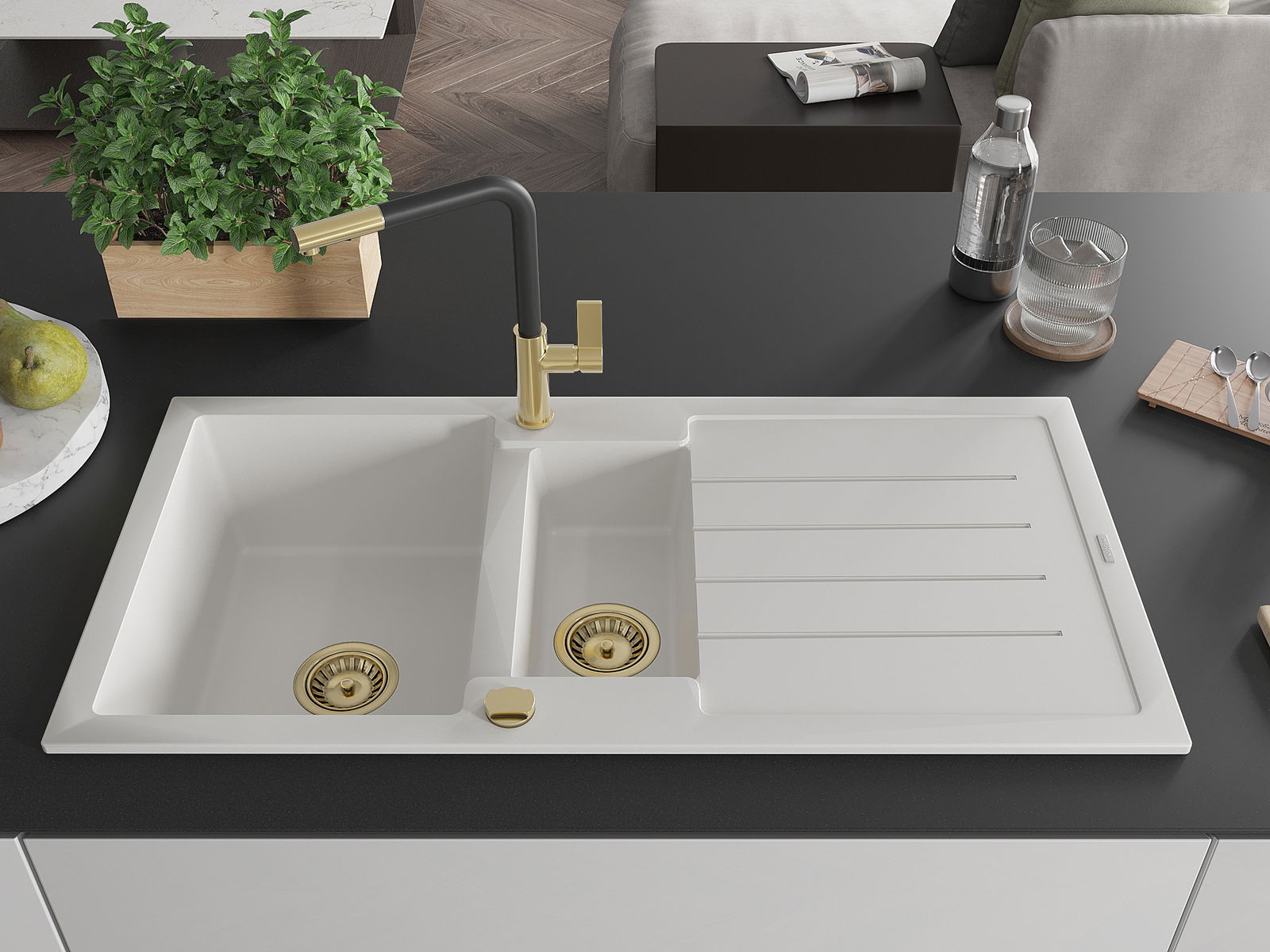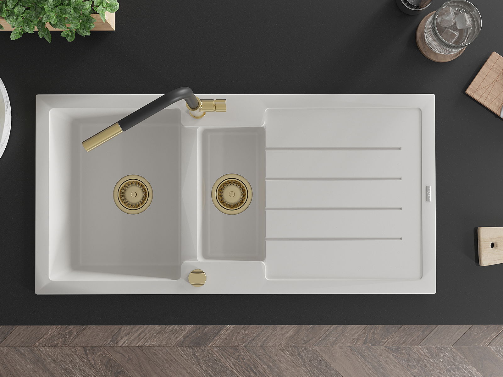 A mosogató magas minőségű gránitból készült. Elegáns, de mindenekelőtt praktikus kiegészítője minden konyhának, függetlenül annak stílusától. A gránit magas minősége és tartóssága hosszú távú használatot biztosít.