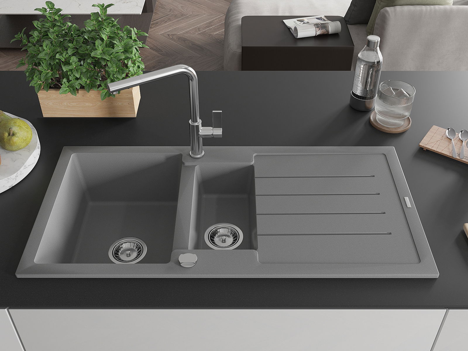 A mosogató kiváló minőségű gránitból készül. Ez egy elegáns és mindenekelőtt minden konyhához praktikus kiegészítés, stílusától függetlenül. A kiváló minőségű és a gránit tartósság biztosítja a sok éves használatát.