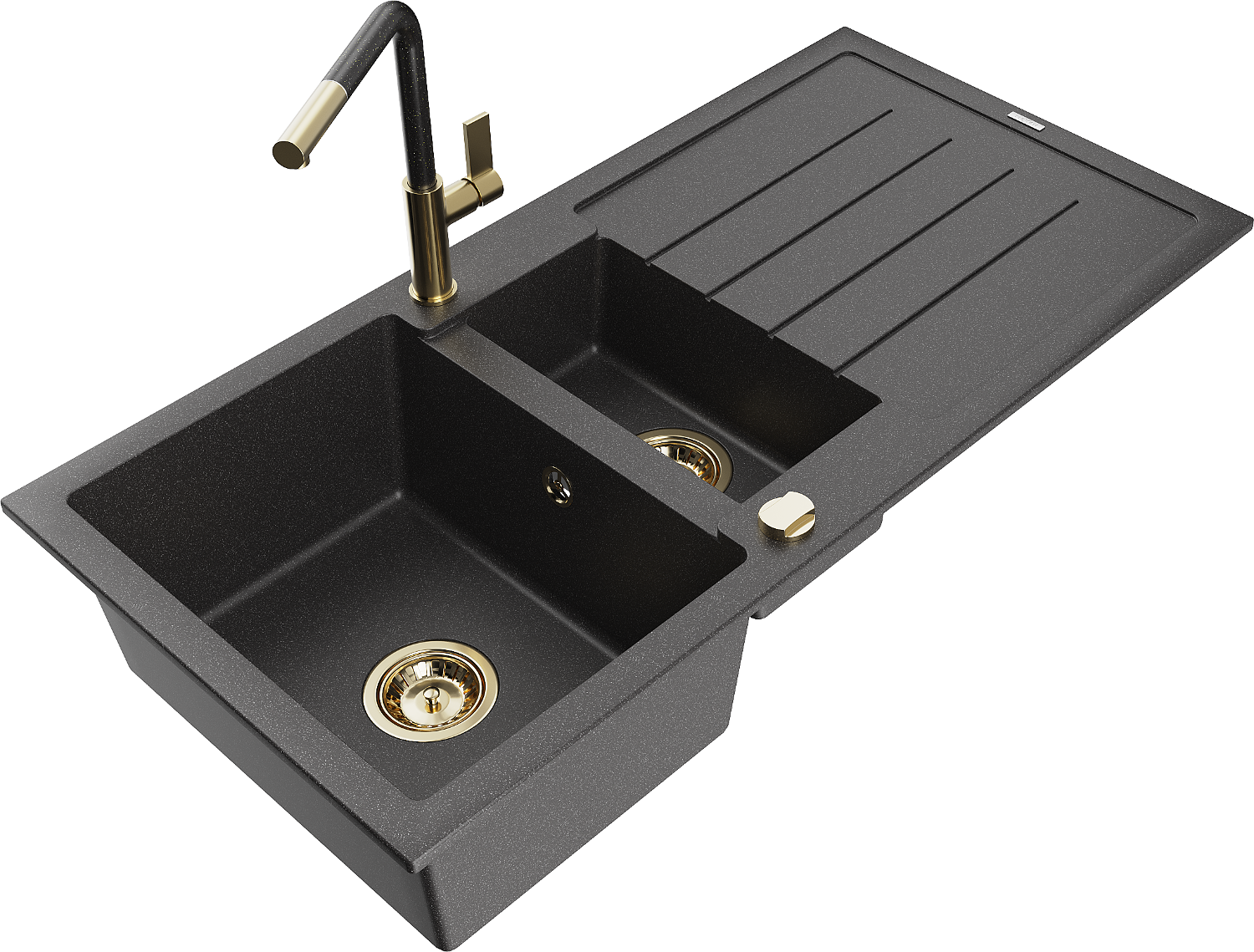 Mexen Andres 1,5-medencés gránit mosogató csepegtetővel és Flora konyhai csapteleppel, fekete pöttyös - 6515-76-670401-75-G