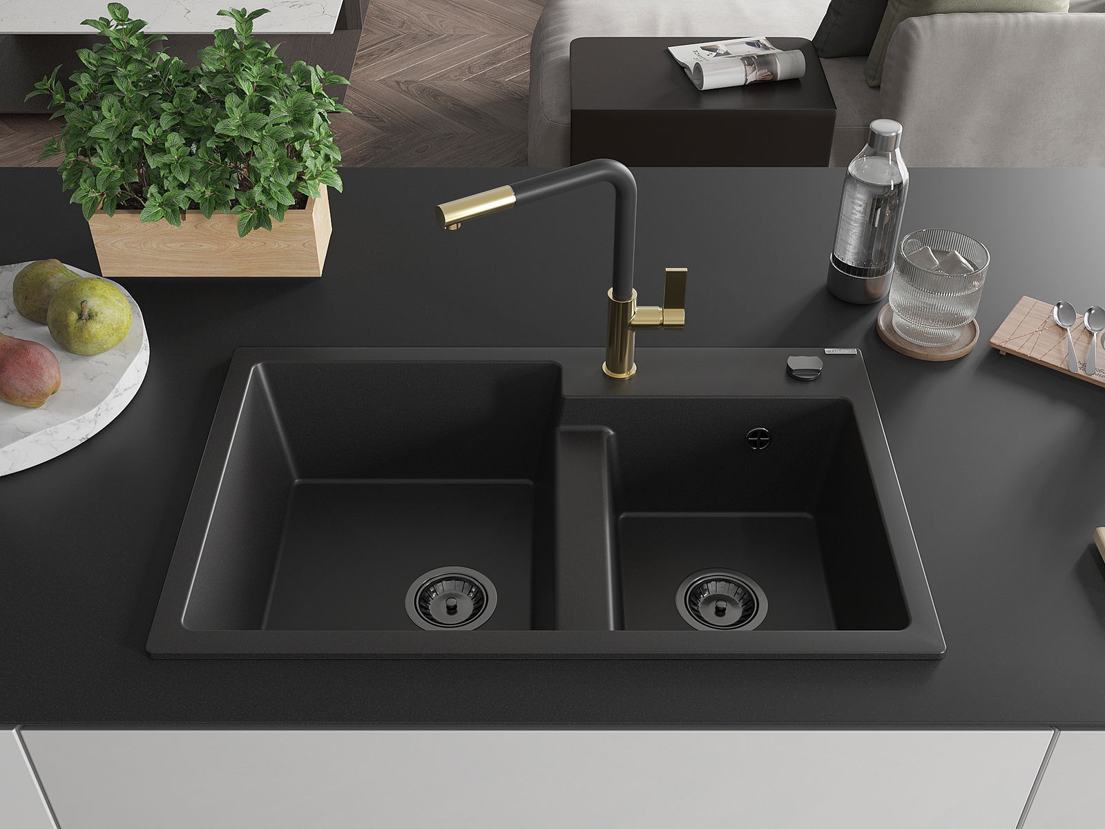 A mosogató magas minőségű gránitból készült. Elegáns, de mindenekelőtt praktikus kiegészítője minden konyhának, függetlenül annak stílusától. A gránit magas minősége és tartóssága hosszú távú használatot biztosít.