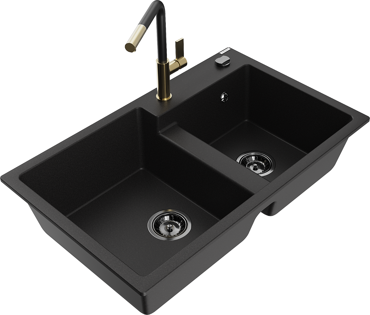 Mexen Tomas gránit konyhai mosogató 2 rekeszes konyhai csapteleppel Flora, fekete - 6516-77-670401-57-B
