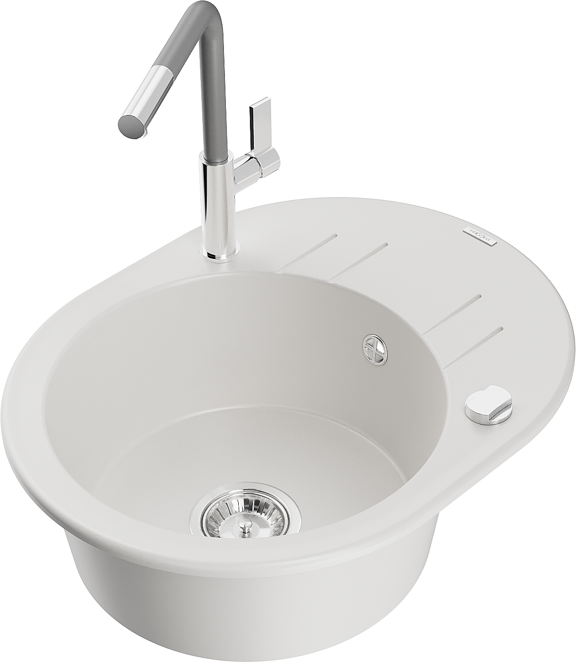 Mexen Kevin gránit mosogató 1-medencés csepegtetővel és Flora konyhai csapteleppel, fehér - 6517-20-670401-06