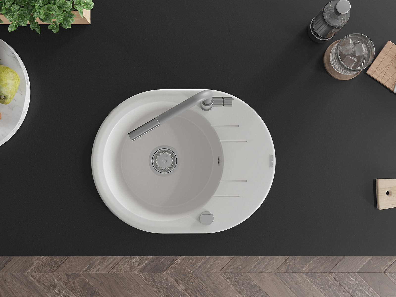 A mosogató kiváló minőségű gránitból készül. Ez egy elegáns és mindenekelőtt minden konyhához praktikus kiegészítés, stílusától függetlenül. A kiváló minőségű és a gránit tartósság biztosítja a sok éves használatát.