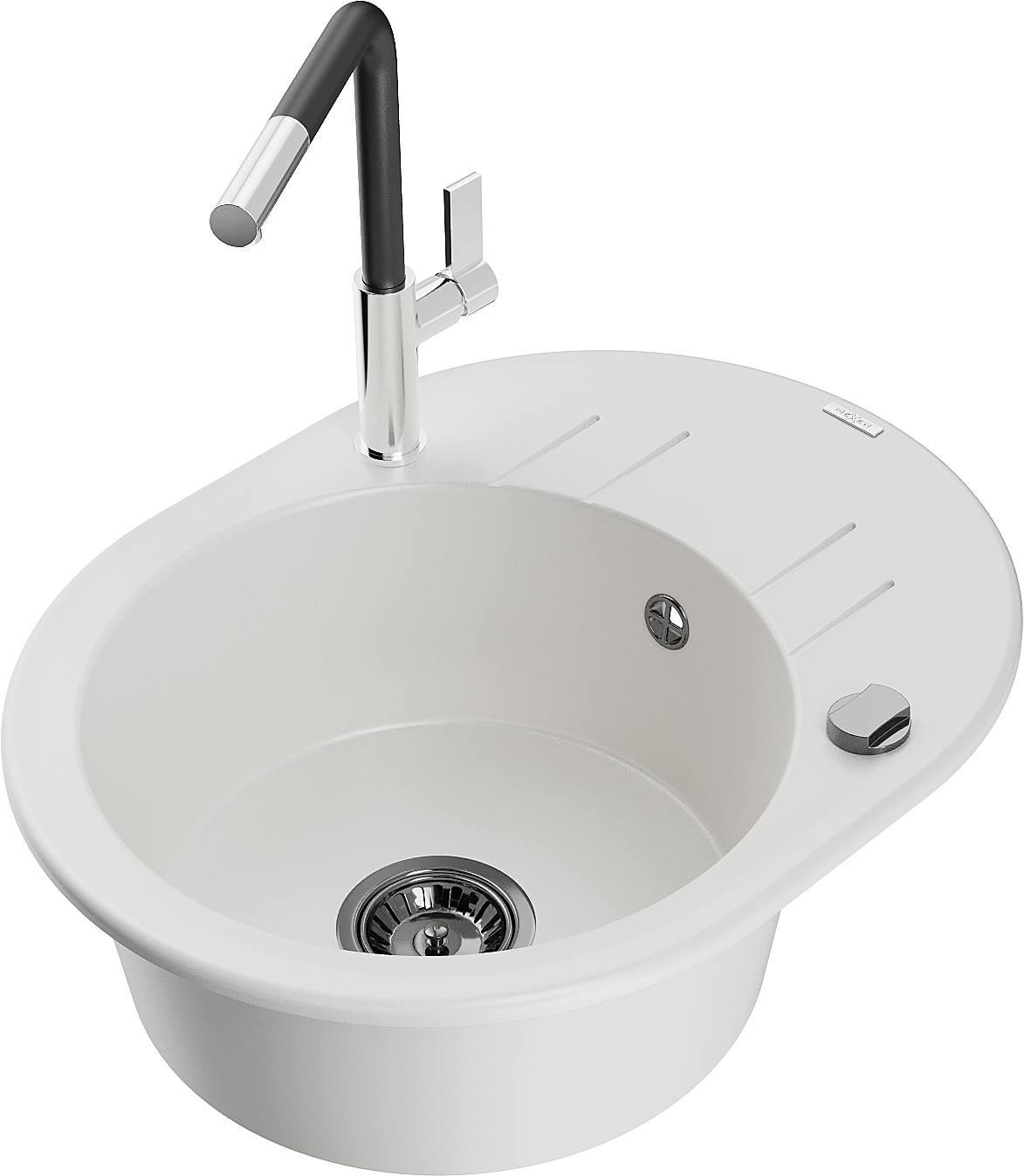 Mexen Kevin gránit mosogató 1-medencés csepegtetővel és Flora konyhai csappal, fehér - 6517-20-670401-07-B