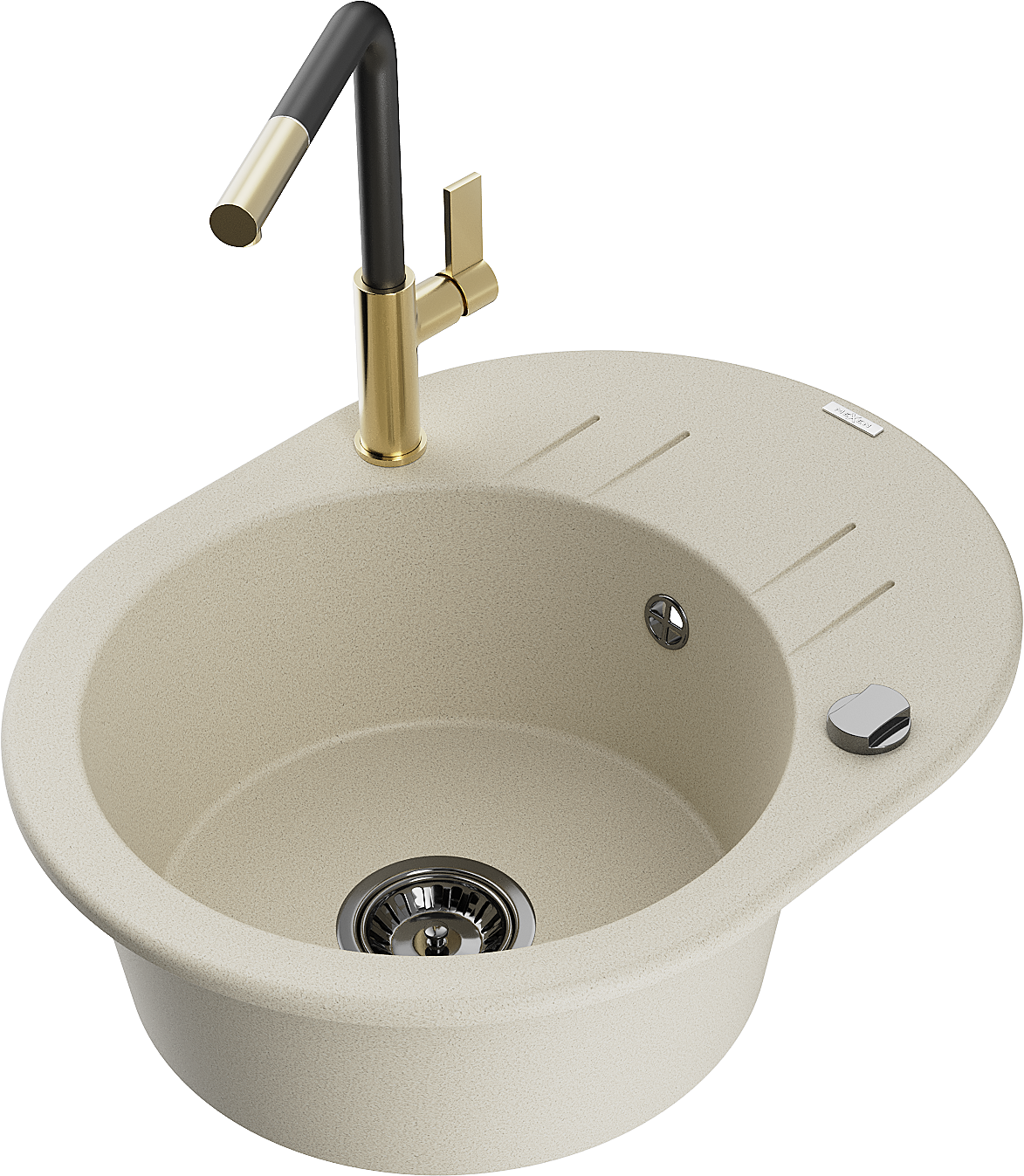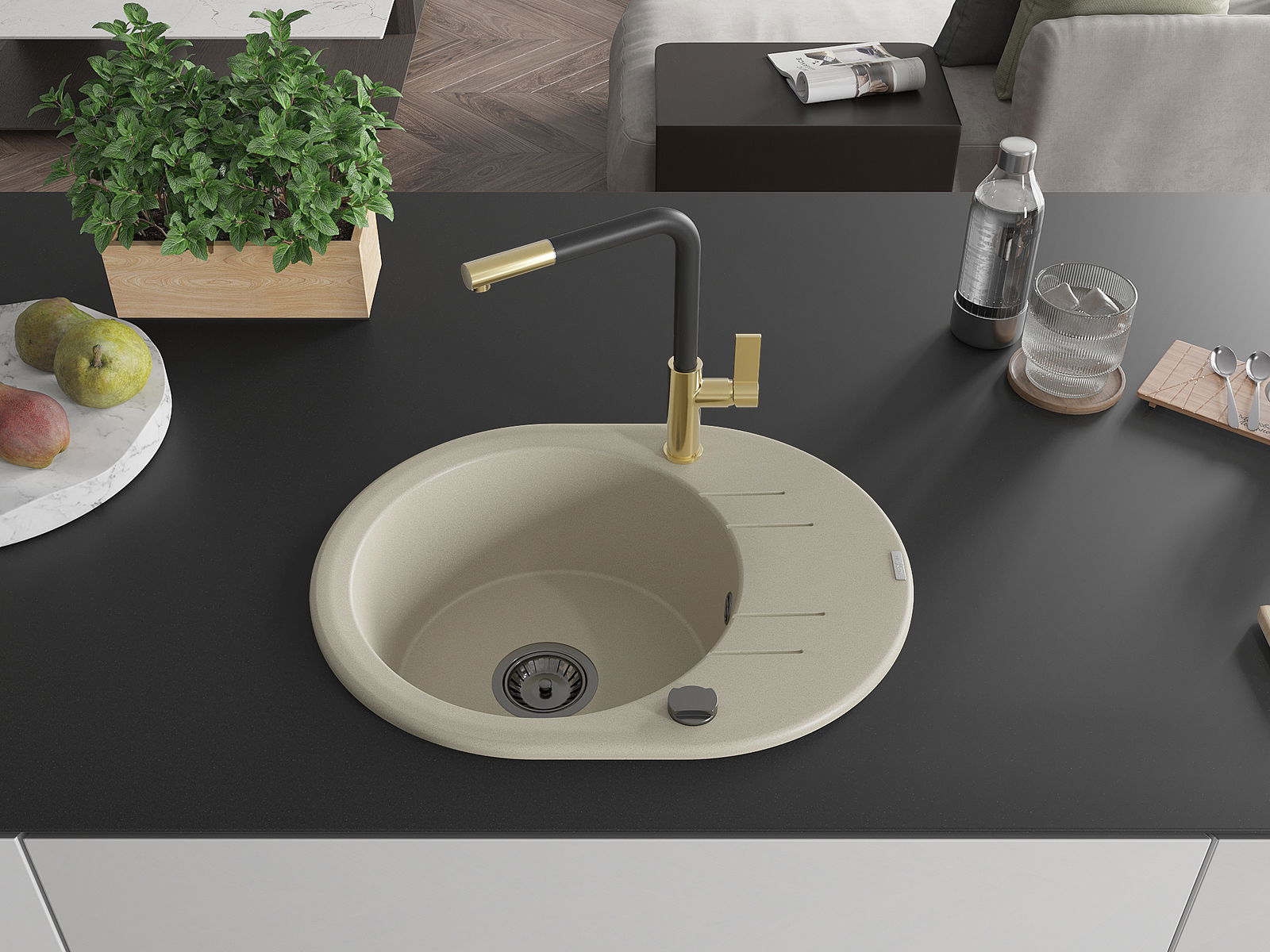 Mexen Kevin egykamrás gránit mosogató csepegtetővel és Flora konyhai csapteleppel, bézs - 6517-69-670401-57-B