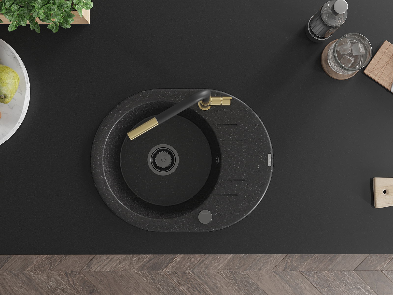 A mosogató kiváló minőségű gránitból készül. Ez egy elegáns és mindenekelőtt minden konyhához praktikus kiegészítés, stílusától függetlenül. A kiváló minőségű és a gránit tartósság biztosítja a sok éves használatát.
