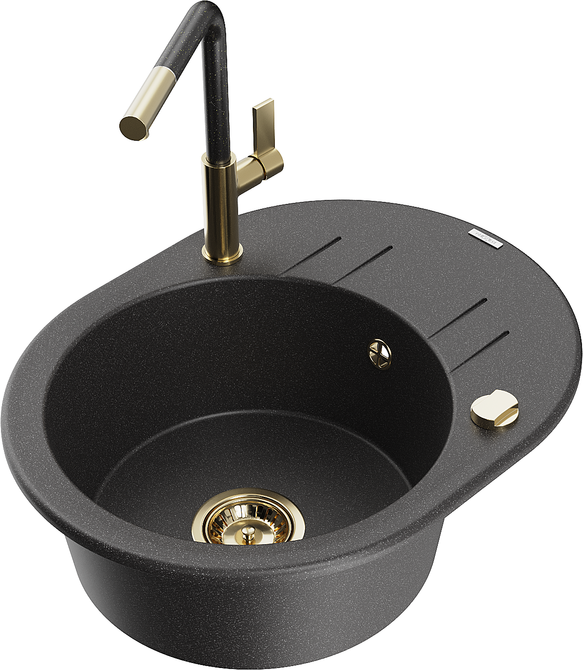 Mexen Kevin egymedencés gránit mosogató csepegtetővel és Flora konyhai csapteleppel, fekete szórt - 6517-76-670401-75-G
