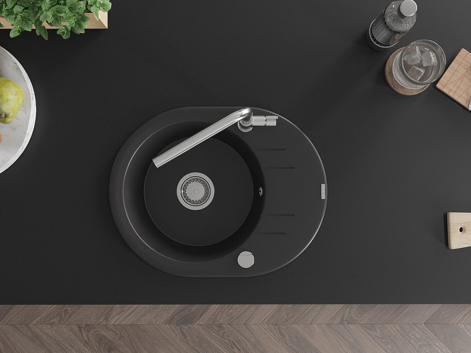 A mosogató kiváló minőségű gránitból készül. Ez egy elegáns és mindenekelőtt minden konyhához praktikus kiegészítés, stílusától függetlenül. A kiváló minőségű és a gránit tartósság biztosítja a sok éves használatát.