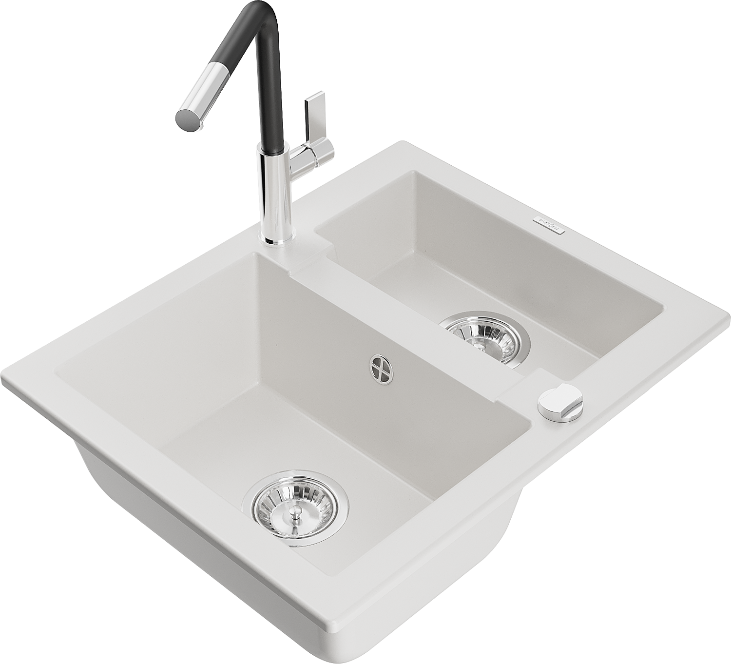 Mexen Carlos gránit mosogató 1,5 rekesszel, Flora konyhai csappal, fehér - 6518-20-670401-07