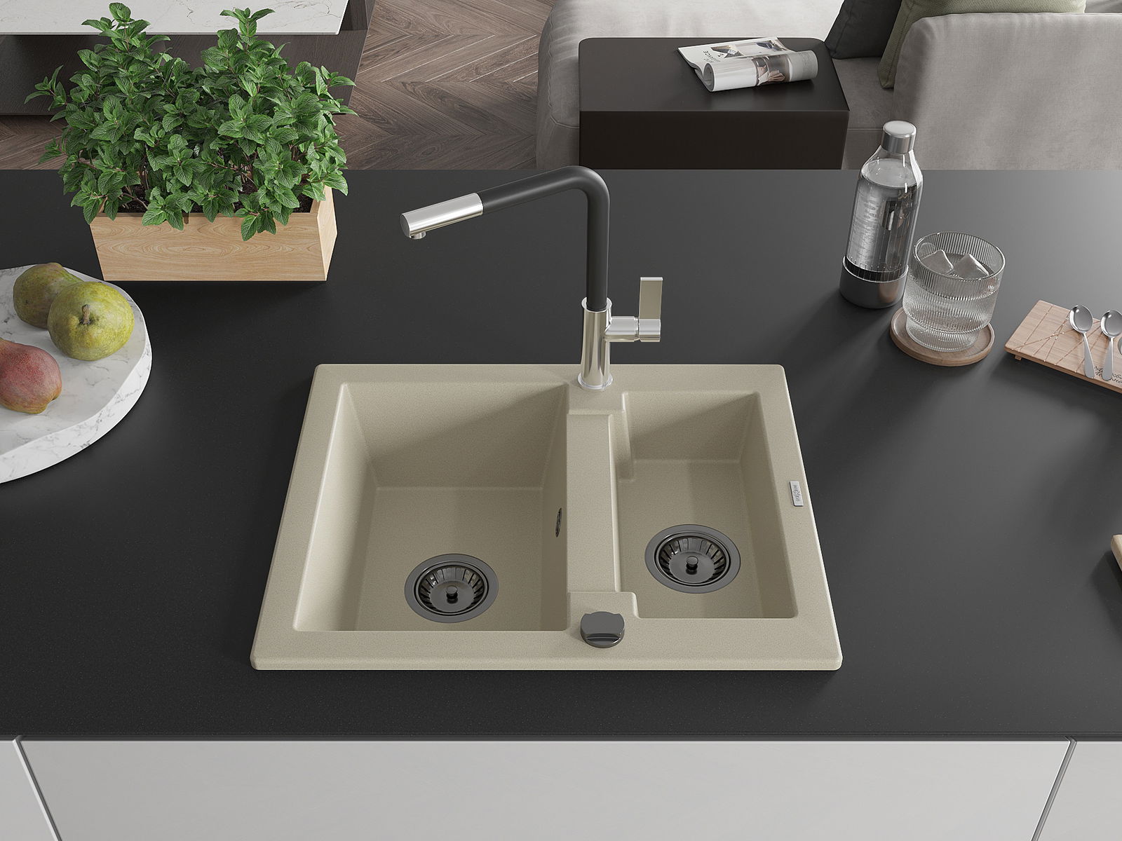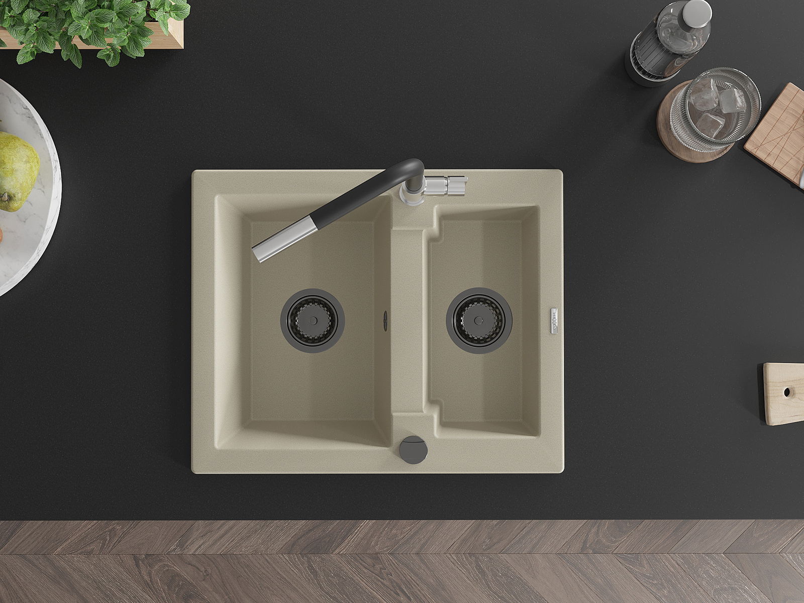 A mosogató magas minőségű gránitból készült. Elegáns, de mindenekelőtt praktikus kiegészítője minden konyhának, függetlenül annak stílusától. A gránit magas minősége és tartóssága hosszú távú használatot biztosít.