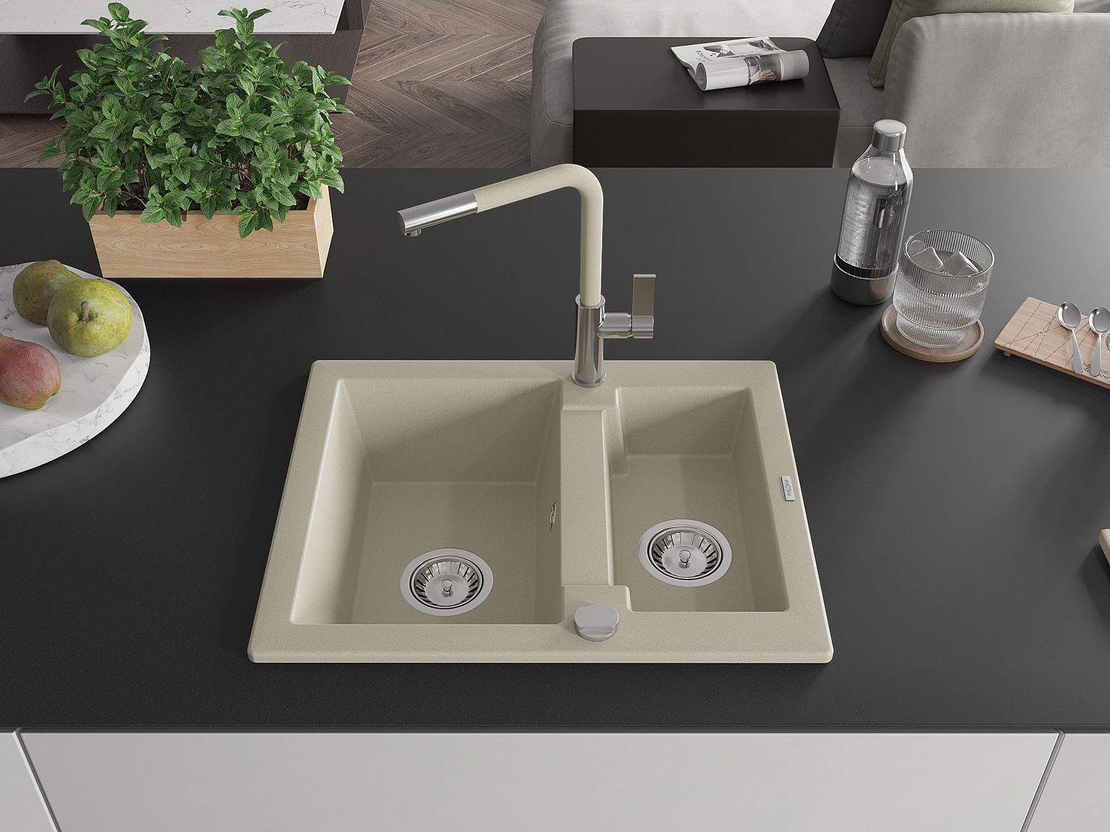A mosogató magas minőségű gránitból készült. Elegáns, de mindenekelőtt praktikus kiegészítője minden konyhának, függetlenül annak stílusától. A gránit magas minősége és tartóssága hosszú távú használatot biztosít.
