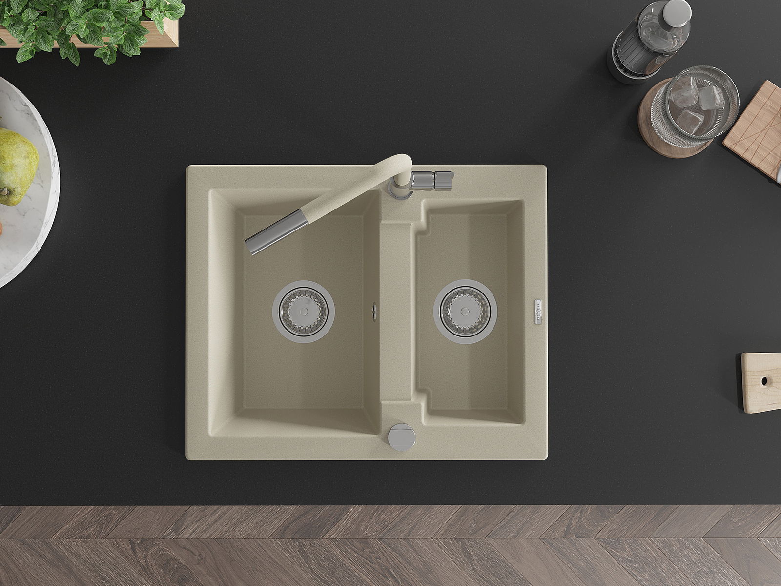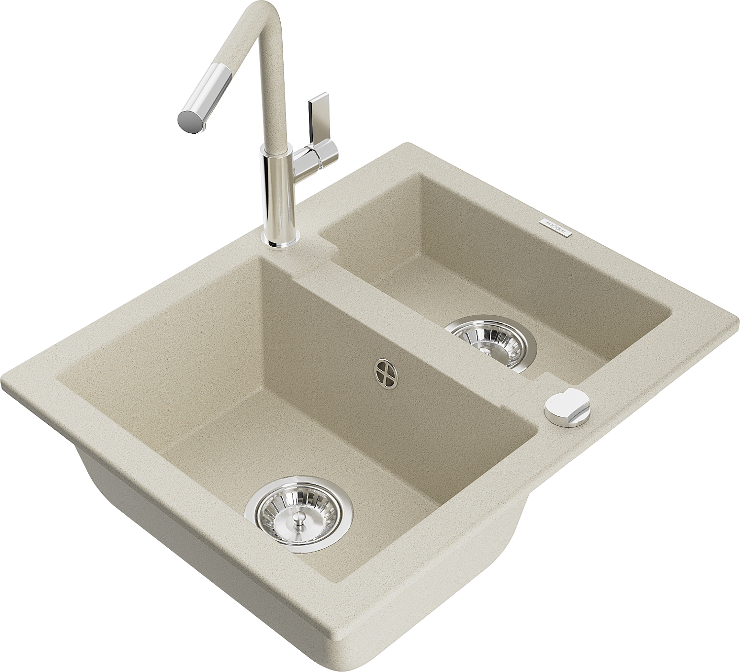 Mexen Carlos gránit mosogató 1,5 rekeszes konyhai csapteleppel, Flora, bézs - 6518-69-670401-09