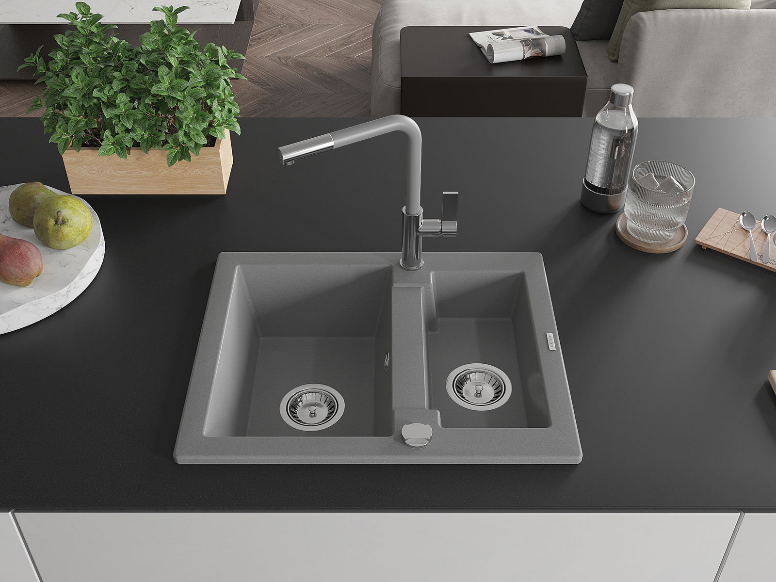 A mosogató magas minőségű gránitból készült. Elegáns, de mindenekelőtt praktikus kiegészítője minden konyhának, függetlenül annak stílusától. A gránit magas minősége és tartóssága hosszú távú használatot biztosít.