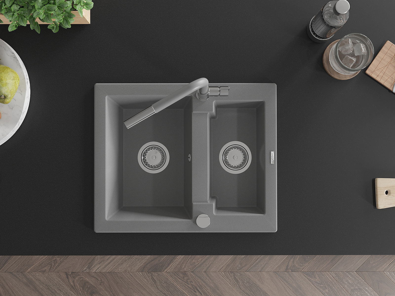 Mexen Carlos 1,5-medencés gránit mosogató Flora konyhai csapteleppel, szürke - 6518-71-670401-06