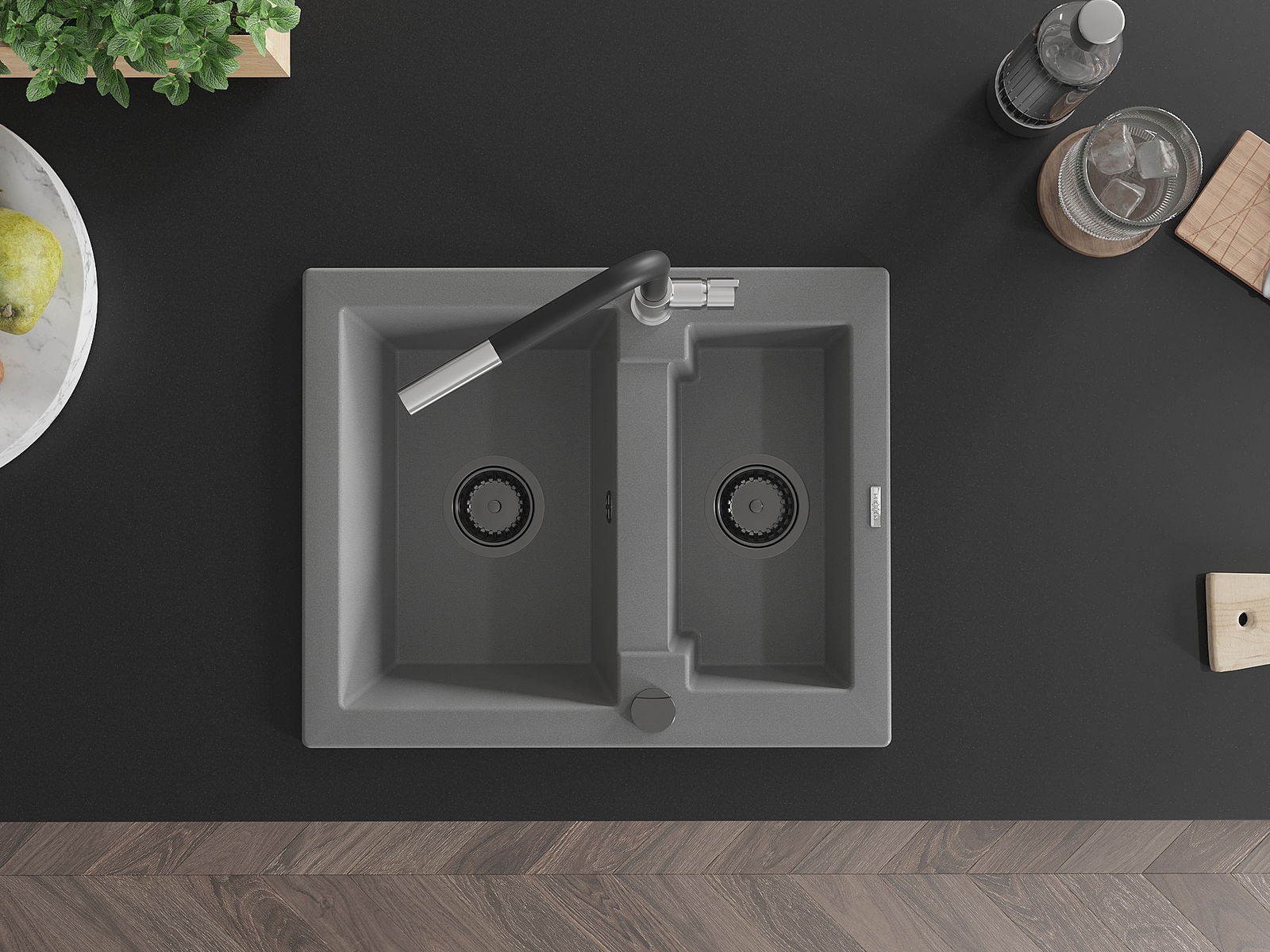 A mosogató kiváló minőségű gránitból készül. Ez egy elegáns és mindenekelőtt minden konyhához praktikus kiegészítés, stílusától függetlenül. A kiváló minőségű és a gránit tartósság biztosítja a sok éves használatát.