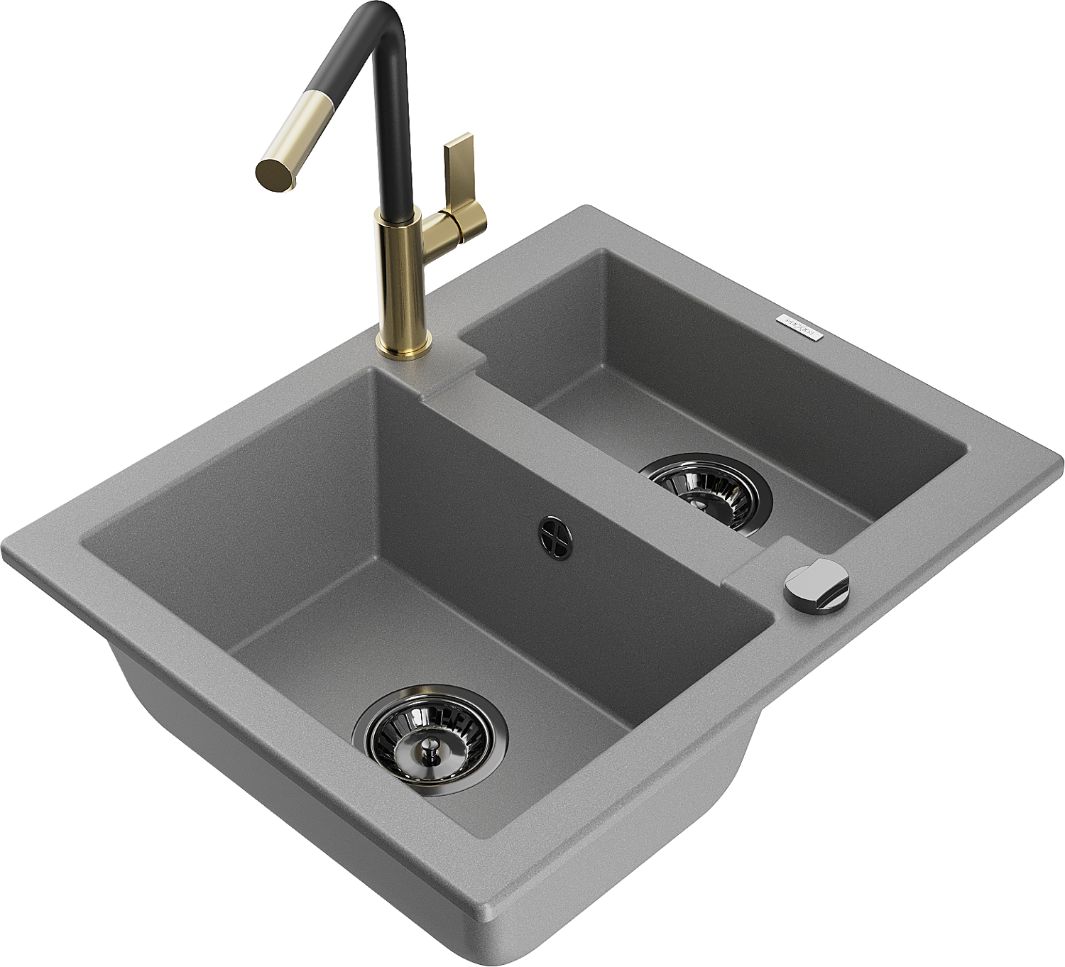 Mexen Carlos 1,5-öblös gránit mosogató Flora konyhai csappal, szürke - 6518-71-670401-57-B