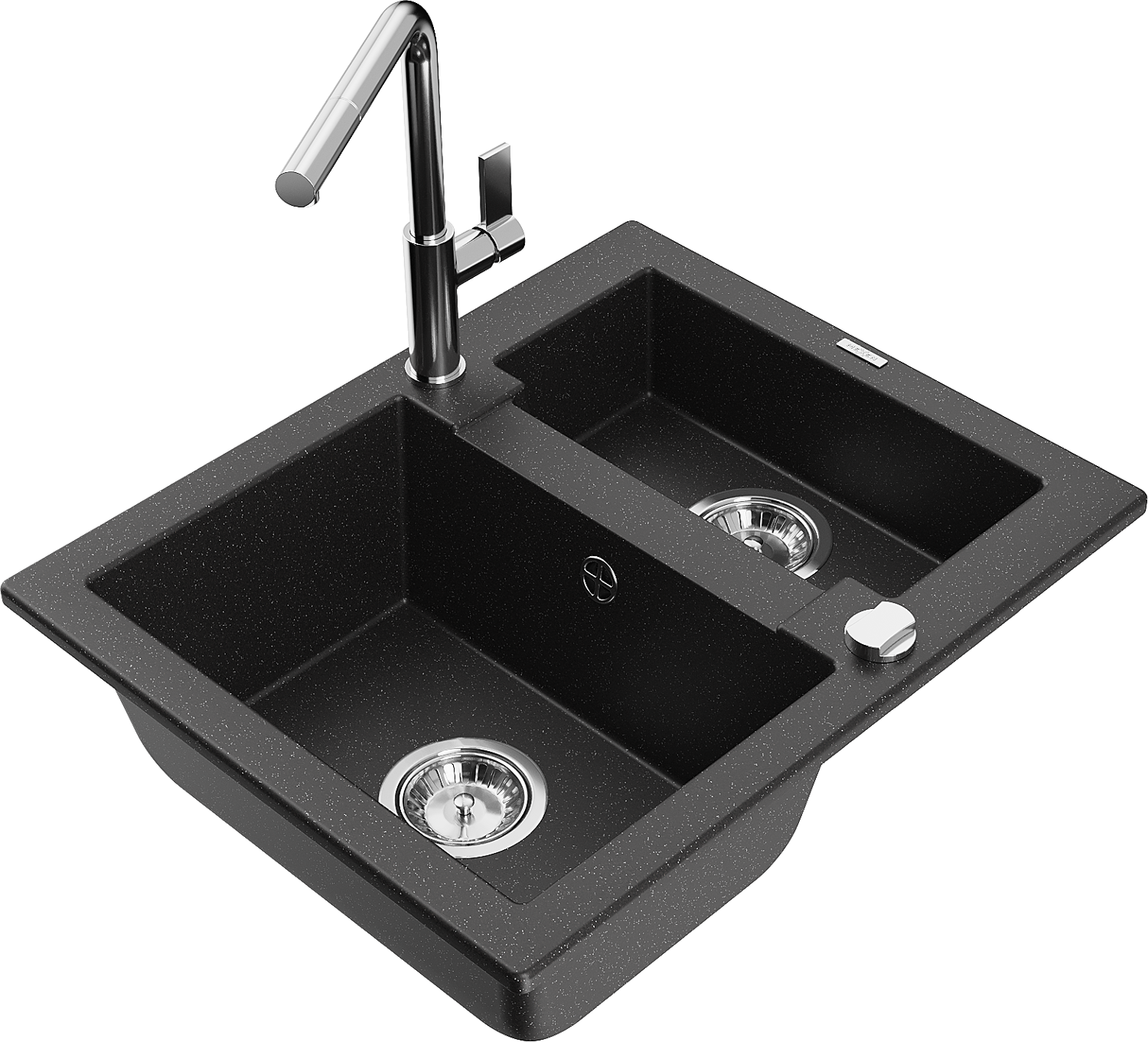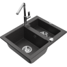 Mexen Carlos gránit mosogató 1,5 medencés konyhai csapteleppel Flora, fekete/ezüst metál - 6518-73-670401-00