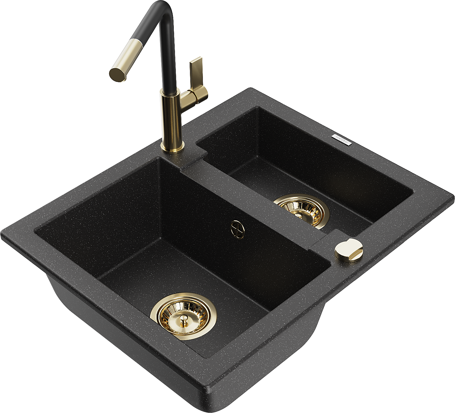 Mexen Carlos 1,5-medencés gránit mosogató Flora konyhai csapteleppel, fekete/ezüst metál - 6518-73-670401-57-G