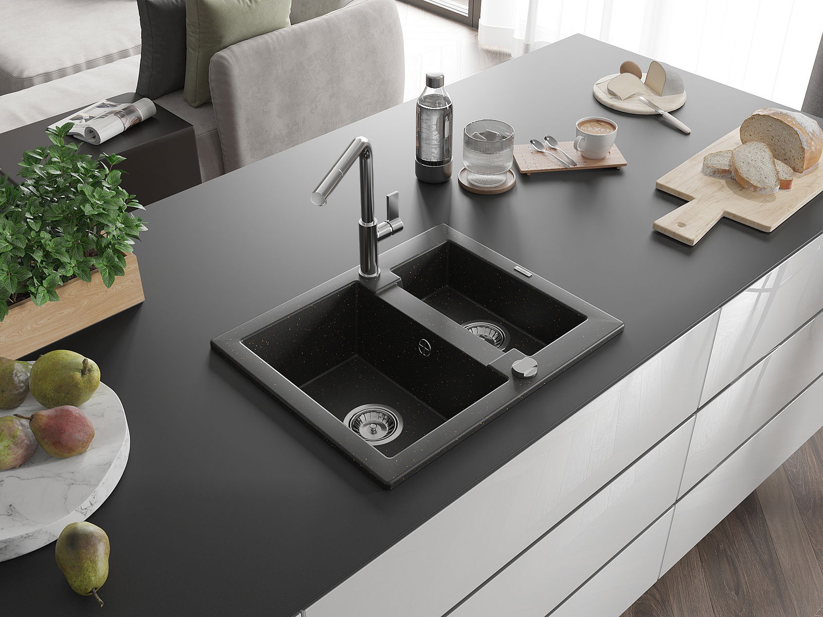 A mosogató kiváló minőségű gránitból készül. Ez egy elegáns és mindenekelőtt minden konyhához praktikus kiegészítés, stílusától függetlenül. A kiváló minőségű és a gránit tartósság biztosítja a sok éves használatát.