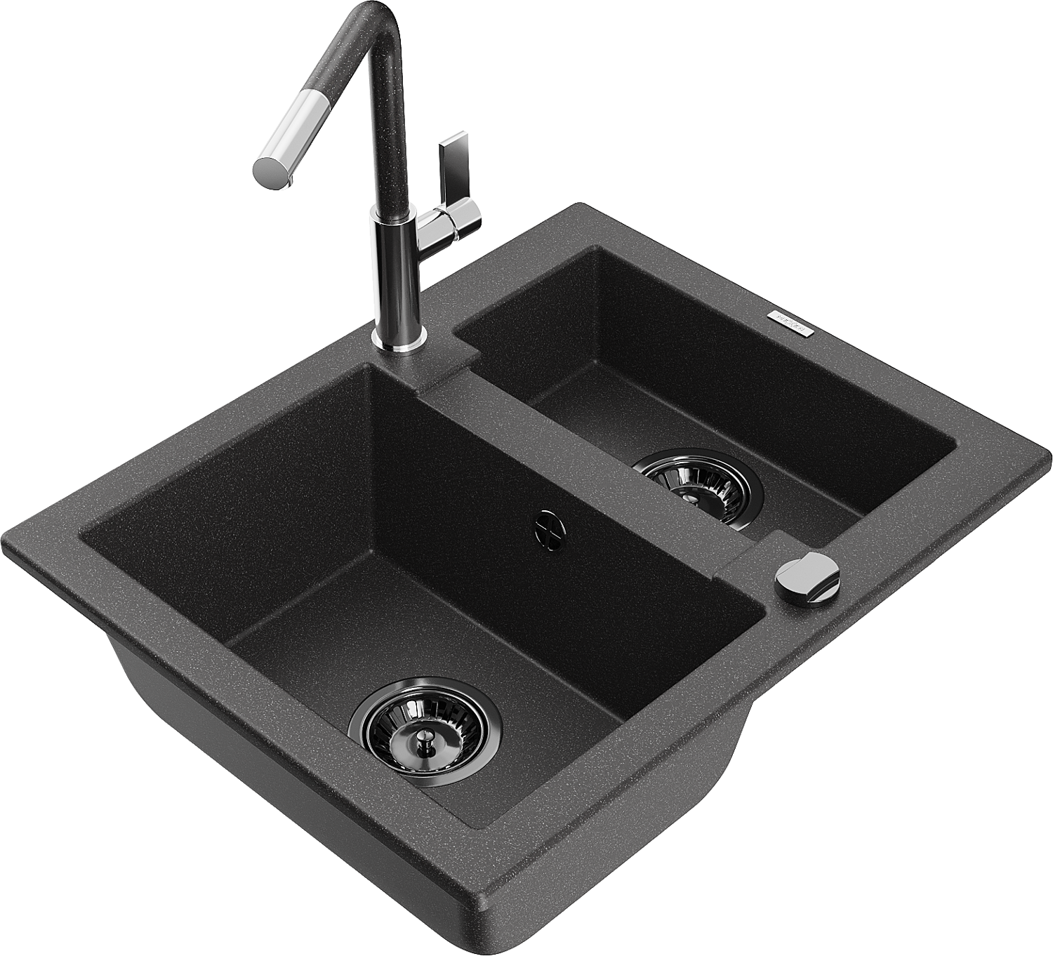 Mexen Carlos gránit mosogató 1,5-medencés konyhai csapteleppel Flora, fekete pöttyös - 6518-76-670401-08-B