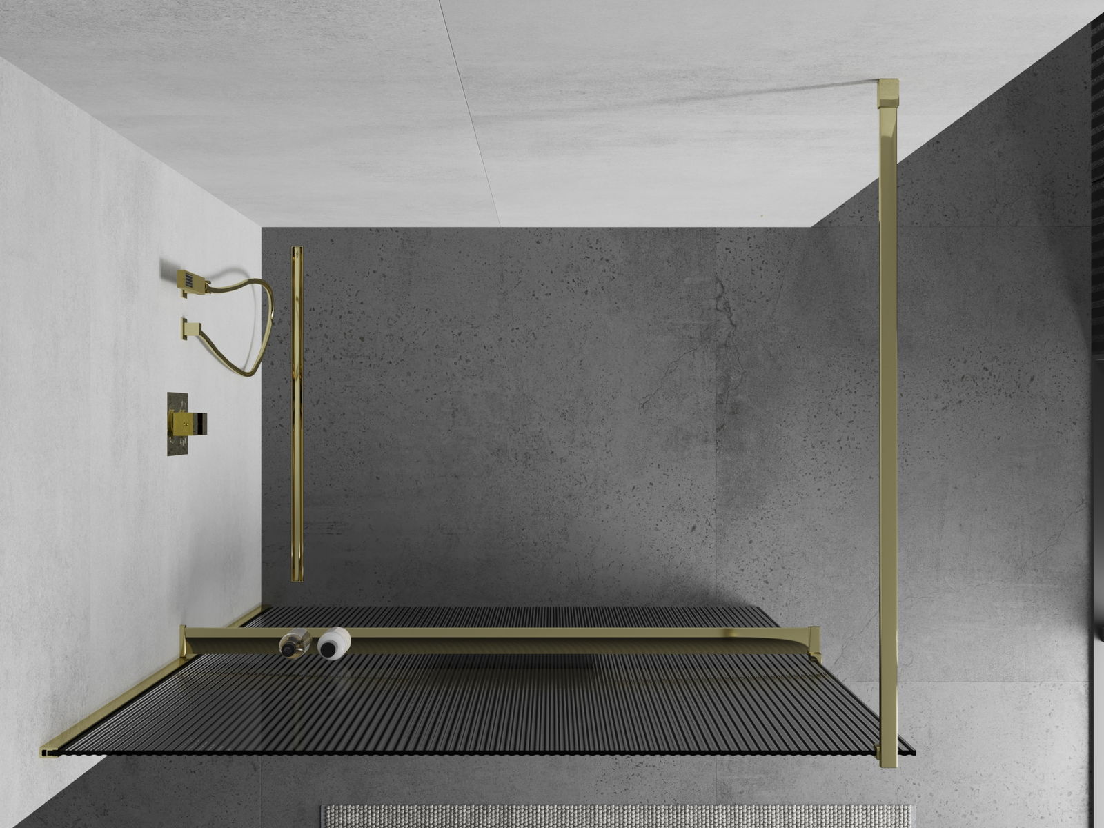 Mexen Kioto+ zuhanyfal polccal Walk-in 110 x 200 cm, csíkos, arany - 800-110-121-50-09
