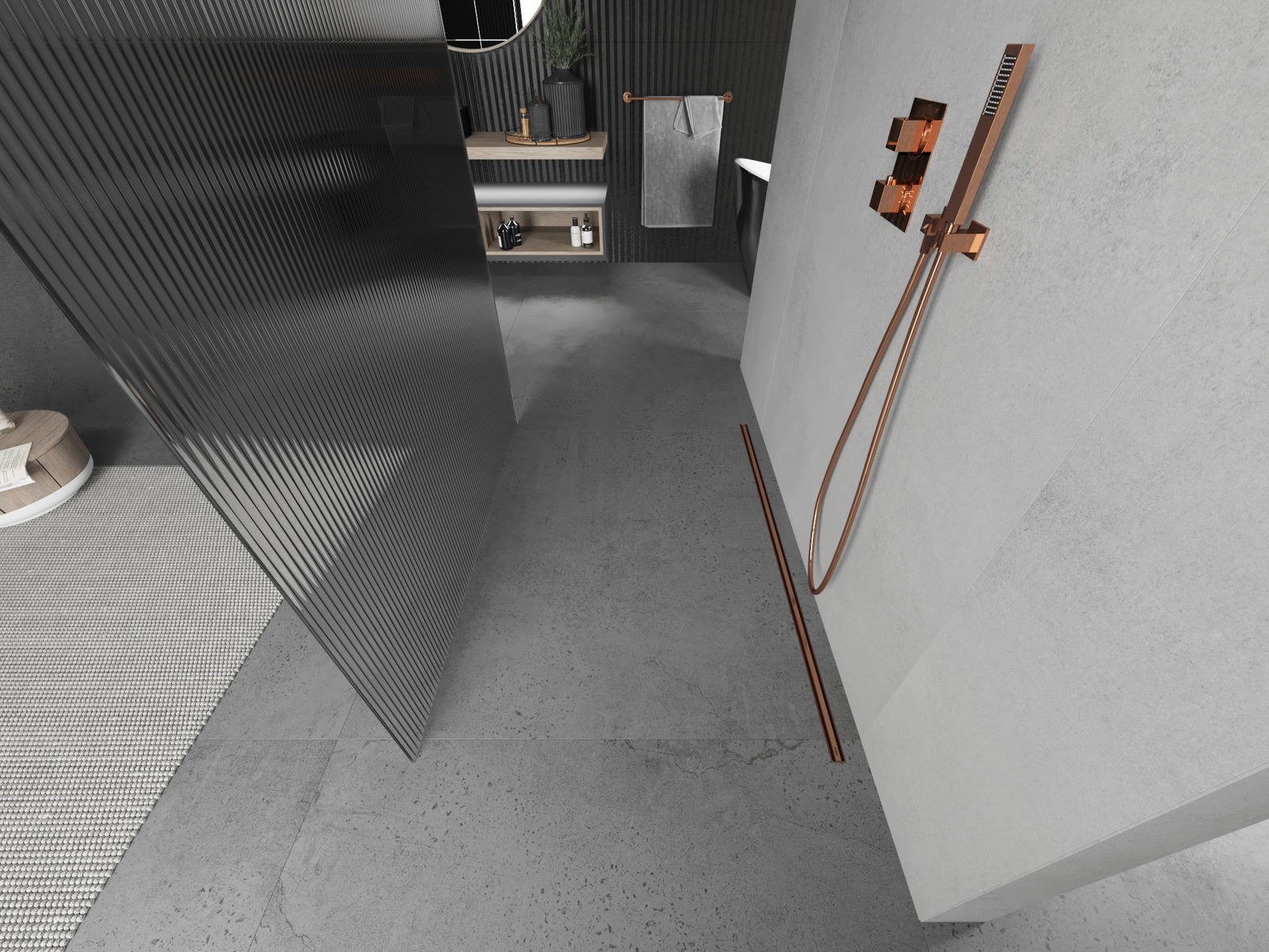 Mexen Kioto szabadon álló zuhanyfal 130 x 200 cm, 8 mm-es csíkok, rózsaarany - 800-130-002-60-09
