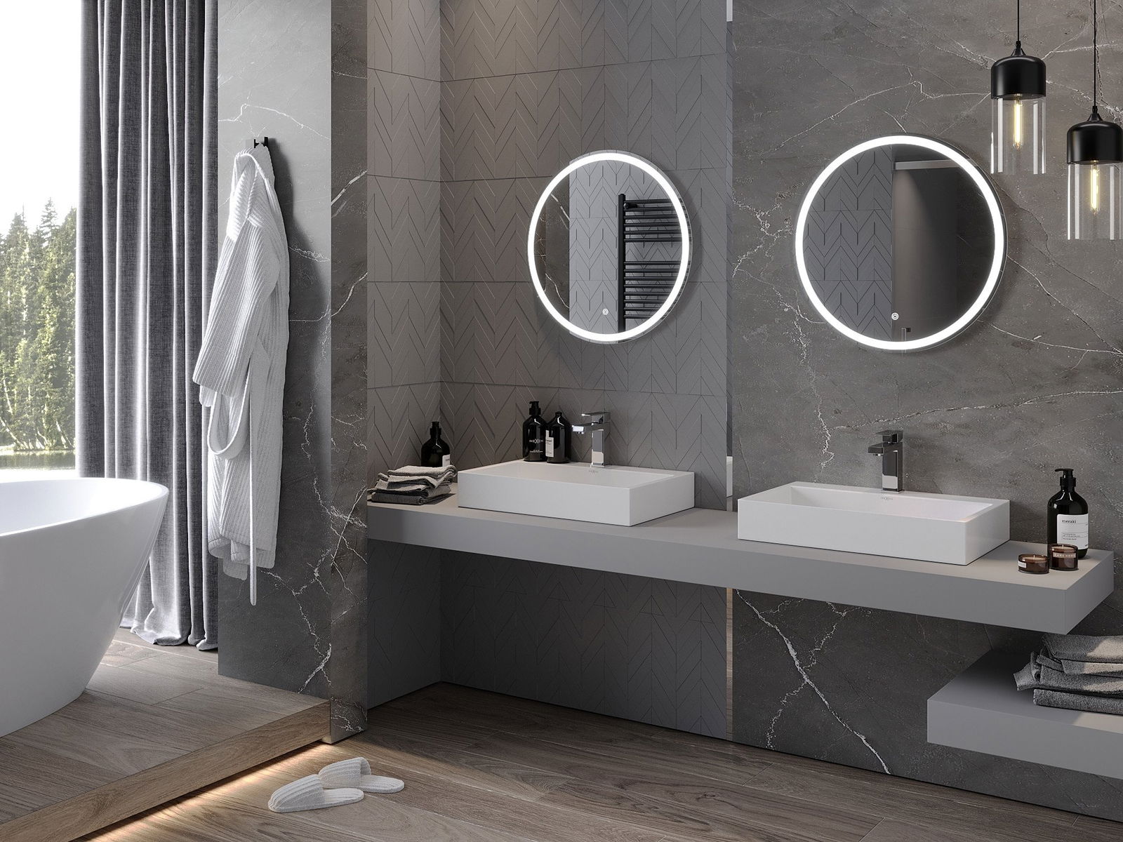 A LED -es háttérvilágítás a tükörnél egy gyakorlati elem, amely megkönnyíti a napi ellátást, az ideális arcvilágítás lehetőségének köszönhetően. A háttérvilágítás modern felületet ad a fürdőszobának, hangsúlyozva elegáns dekorációját.