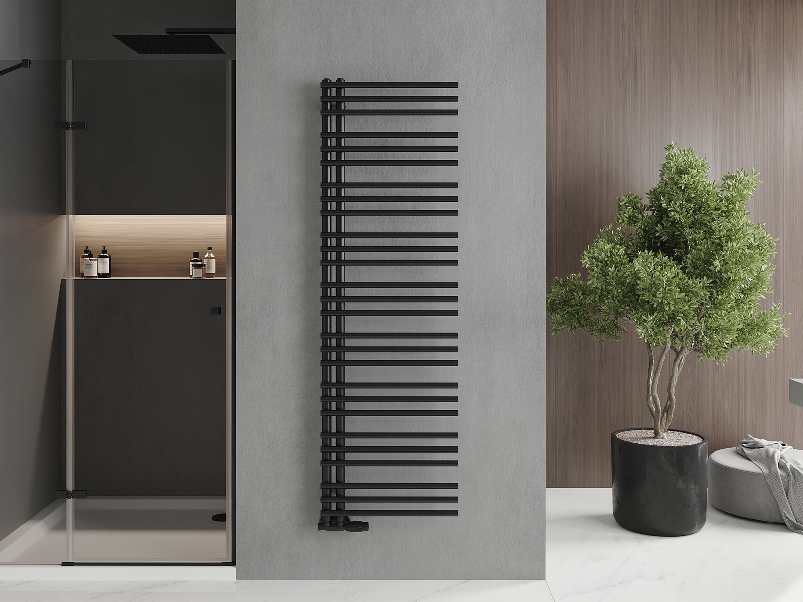 A Mexen Neptun egy dekoratív fürdőszobai radiátor 1600 x 500 mm méretben, amely tökéletesen illeszkedik modern enteriőrökbe. A 662 W fűtési teljesítménye hatékony fűtést biztosít különböző körülmények között, maximális működési hőmérséklete pedig eléri a 95 °C-ot. Acélból készült, elegáns fekete RAL 9005 színnel festve, magas minőségű korrózióálló festékbevonatának köszönhetően ellenáll a korróziónak. A 4xG ½″ csatlakozások és a fűtőszál szerelhetősége növelik funkcionalitását. A készlet tartalmazza a függesztőket és a szerelőkészletet.
