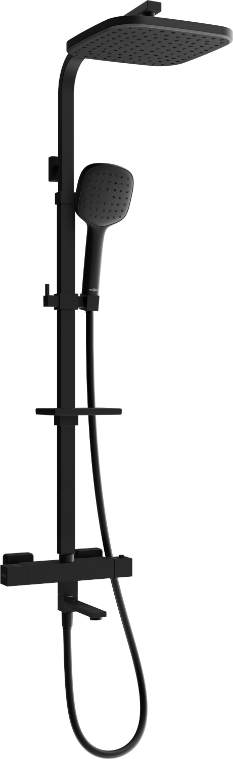 Mexen CQ33 fürdőkád-zuhany szett esőztetővel és termosztatikus csapteleppel, fekete - 779103395-70