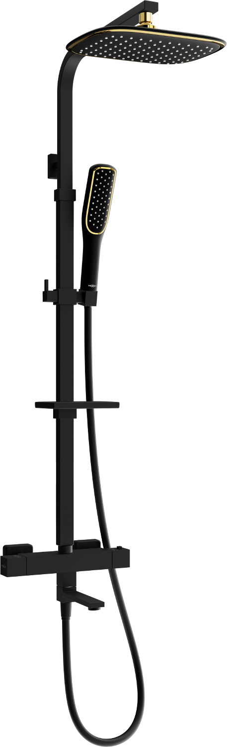 Mexen CQ49 kád-zuhany szett esőztetővel és termosztátos csapteleppel, fekete/arany - 779104995-75