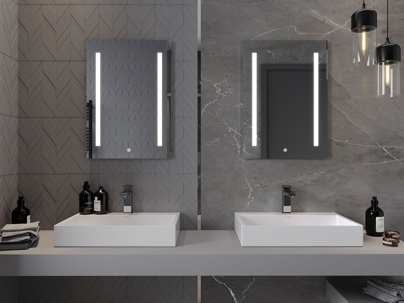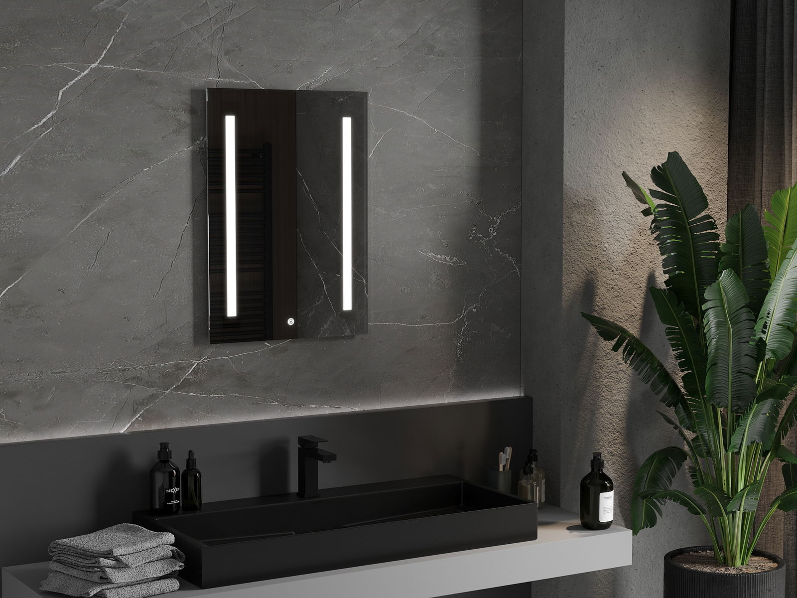 A tükörvilágítás egyszerűen és kényelmes módon indítható a tükör felületén lévő kapcsoló megérintésével. Ez lehetővé teszi a gyors megvilágítást, anélkül, hogy el kellene érnie a további hagyományos világítási kapcsolót.