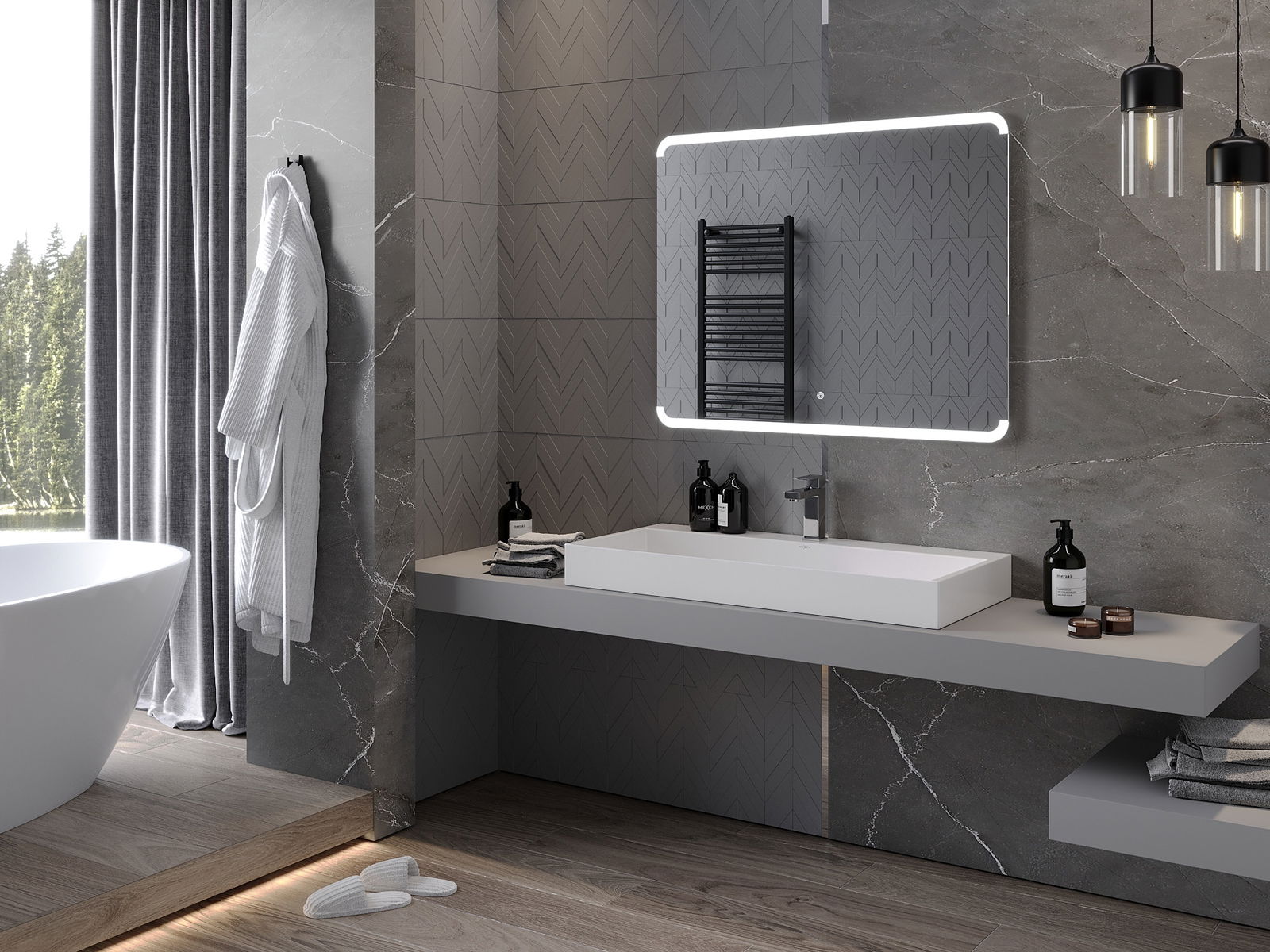 A tükörvilágítás egyszerűen és kényelmes módon indítható a tükör felületén lévő kapcsoló megérintésével. Ez lehetővé teszi a gyors megvilágítást, anélkül, hogy el kellene érnie a további hagyományos világítási kapcsolót.