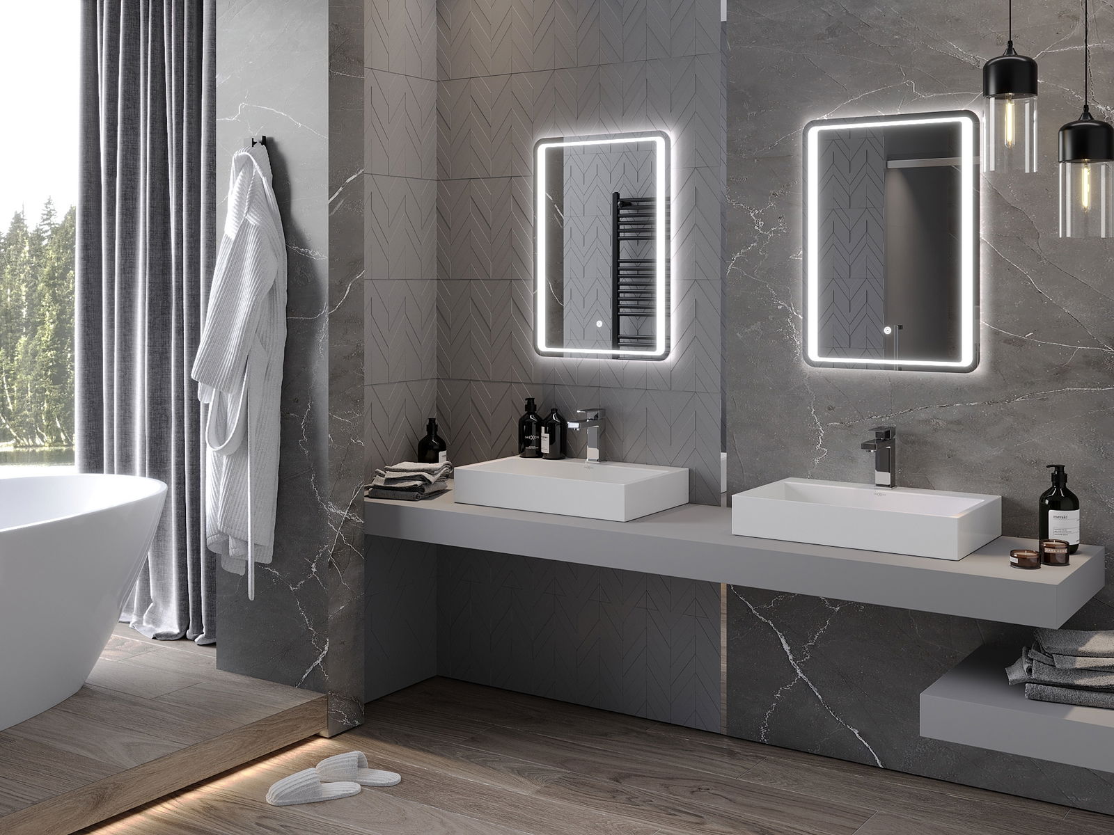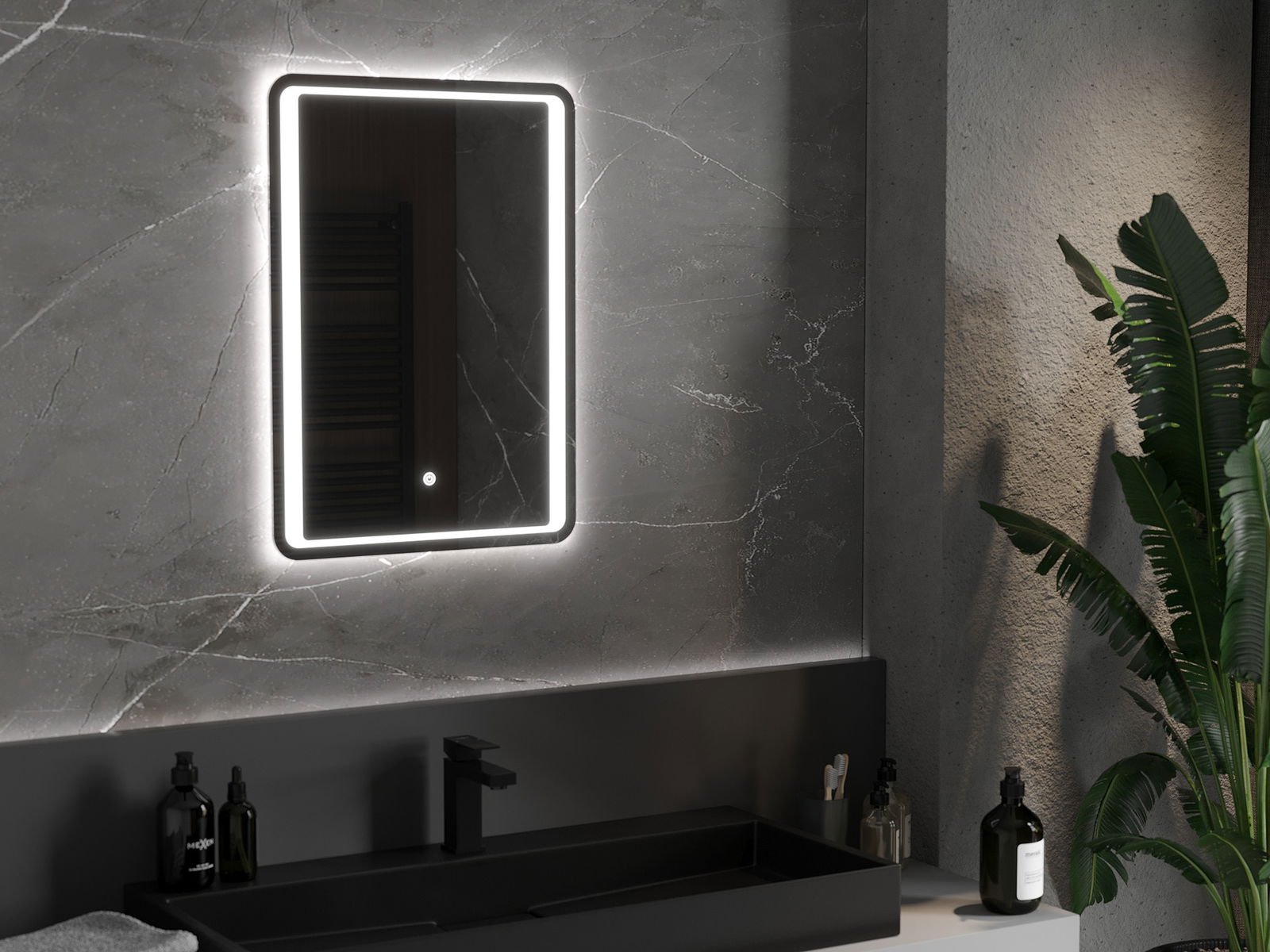 A tükörvilágítás egyszerűen és kényelmes módon indítható a tükör felületén lévő kapcsoló megérintésével. Ez lehetővé teszi a gyors megvilágítást, anélkül, hogy el kellene érnie a további hagyományos világítási kapcsolót.