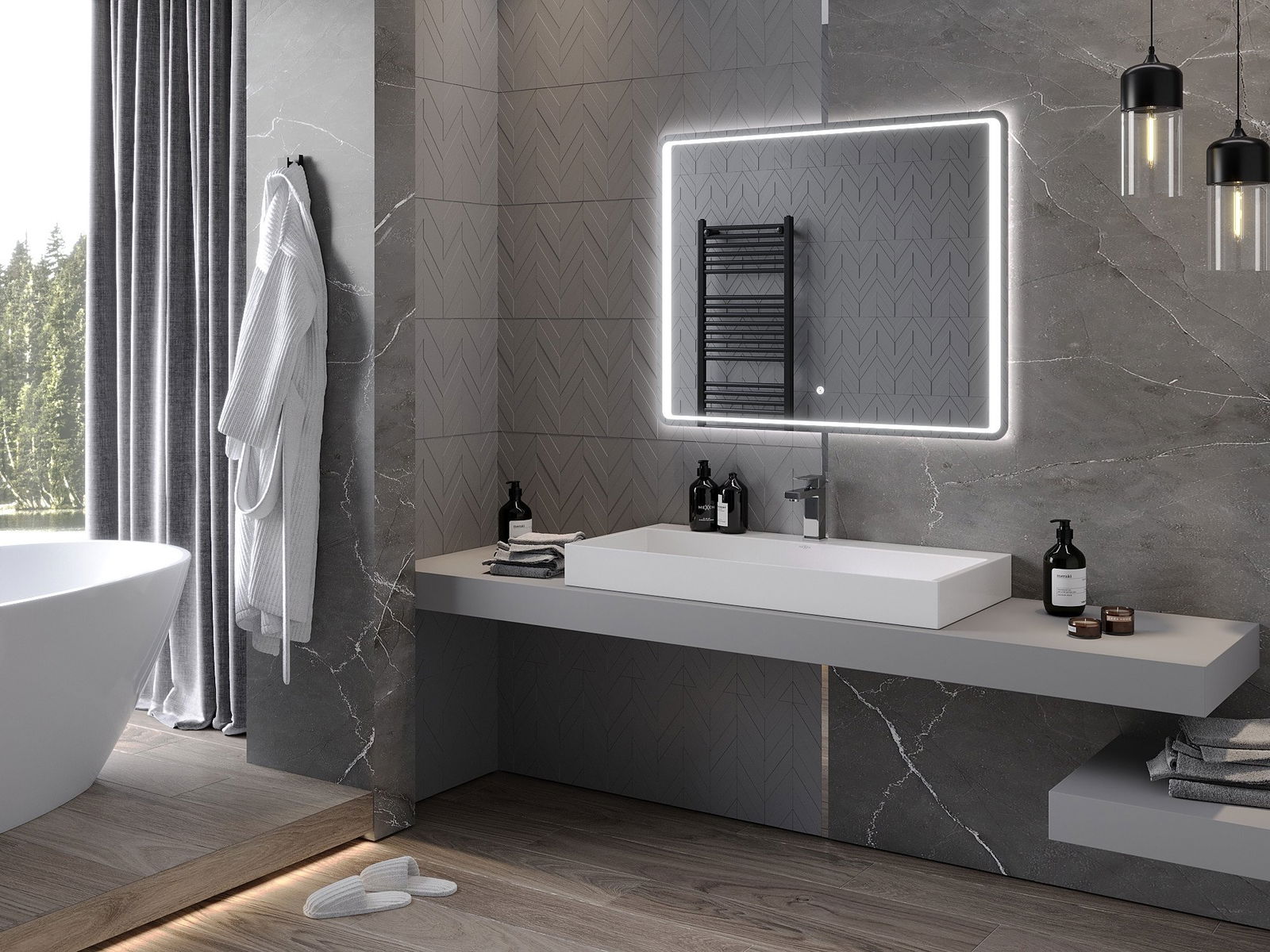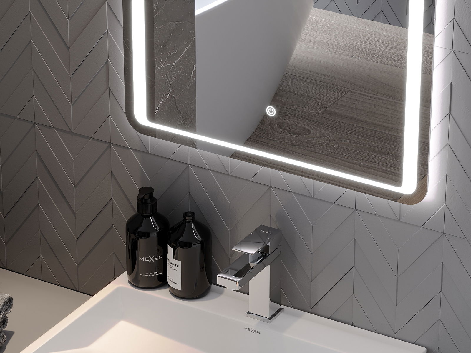 A tükörvilágítás egyszerűen és kényelmes módon indítható a tükör felületén lévő kapcsoló megérintésével. Ez lehetővé teszi a gyors megvilágítást, anélkül, hogy el kellene érnie a további hagyományos világítási kapcsolót.