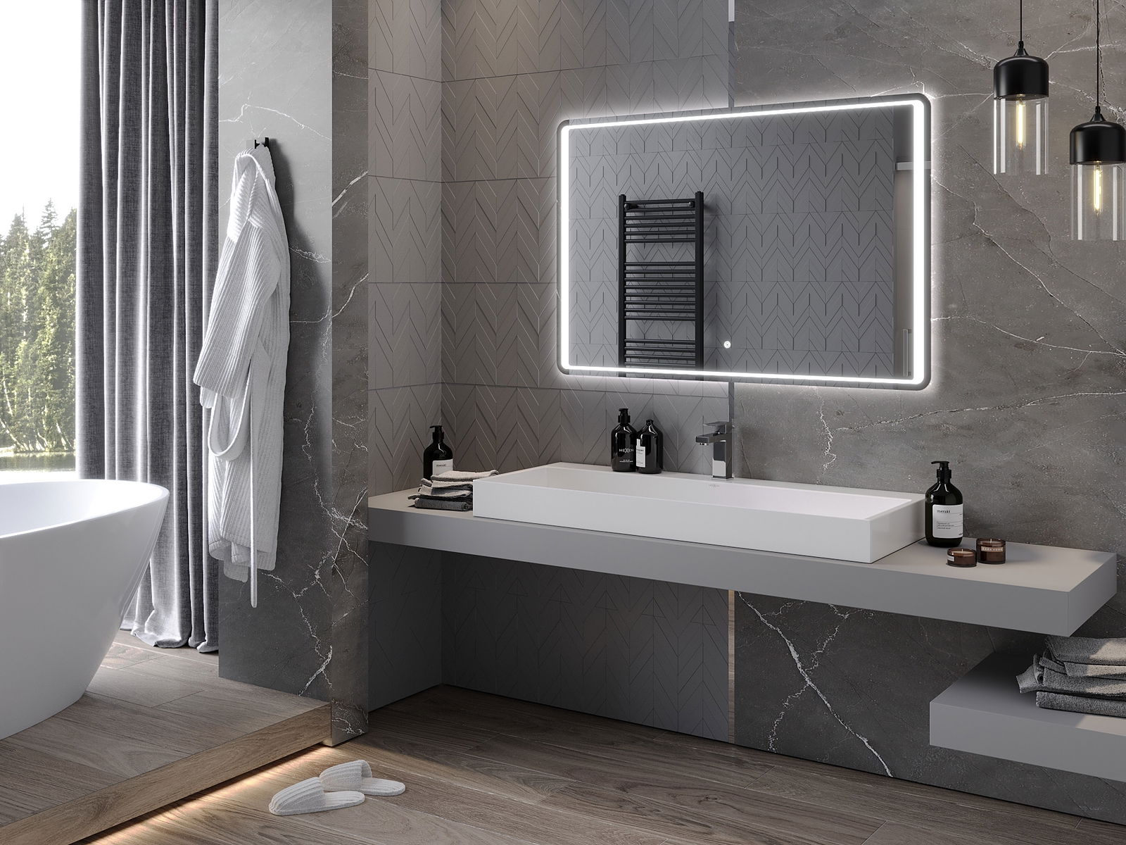 A tükörvilágítás egyszerűen és kényelmes módon indítható a tükör felületén lévő kapcsoló megérintésével. Ez lehetővé teszi a gyors megvilágítást, anélkül, hogy el kellene érnie a további hagyományos világítási kapcsolót.
