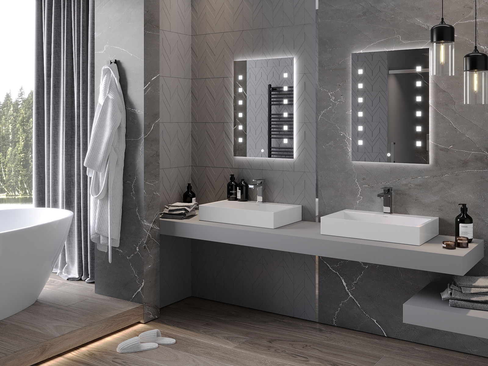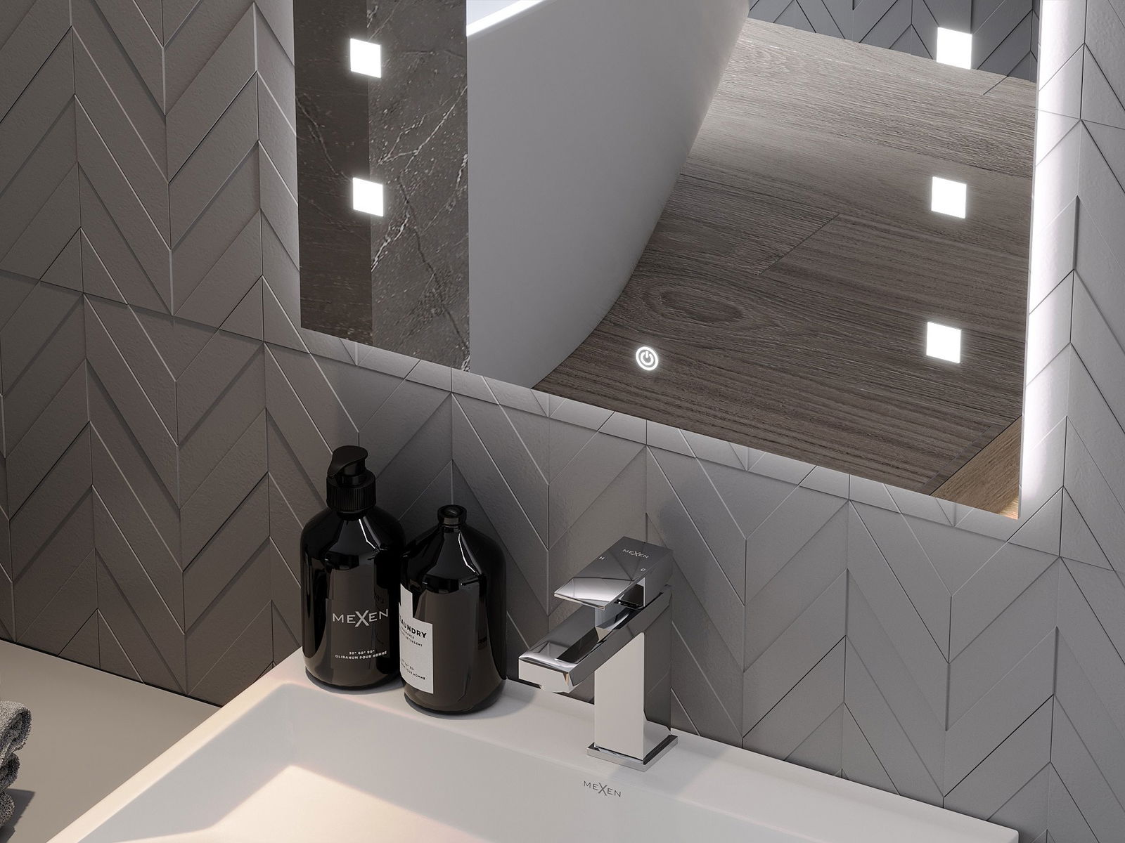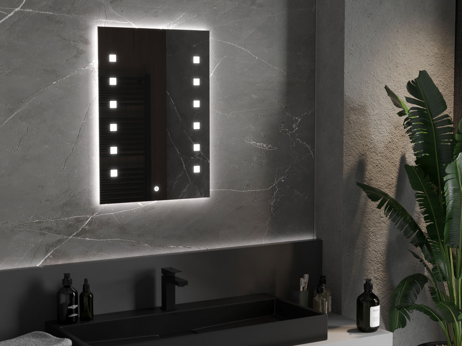 A tükörvilágítás egyszerűen és kényelmes módon indítható a tükör felületén lévő kapcsoló megérintésével. Ez lehetővé teszi a gyors megvilágítást, anélkül, hogy el kellene érnie a további hagyományos világítási kapcsolót.