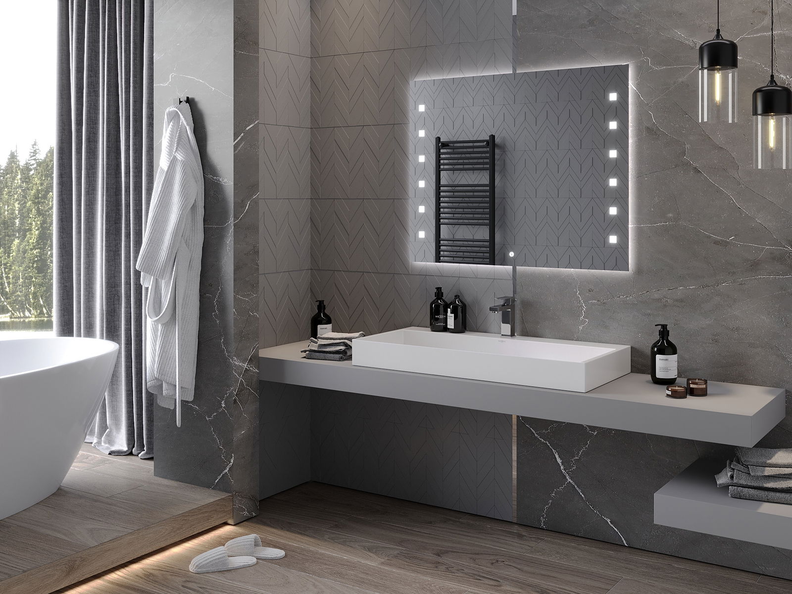 A tükörvilágítás egyszerűen és kényelmes módon indítható a tükör felületén lévő kapcsoló megérintésével. Ez lehetővé teszi a gyors megvilágítást, anélkül, hogy el kellene érnie a további hagyományos világítási kapcsolót.