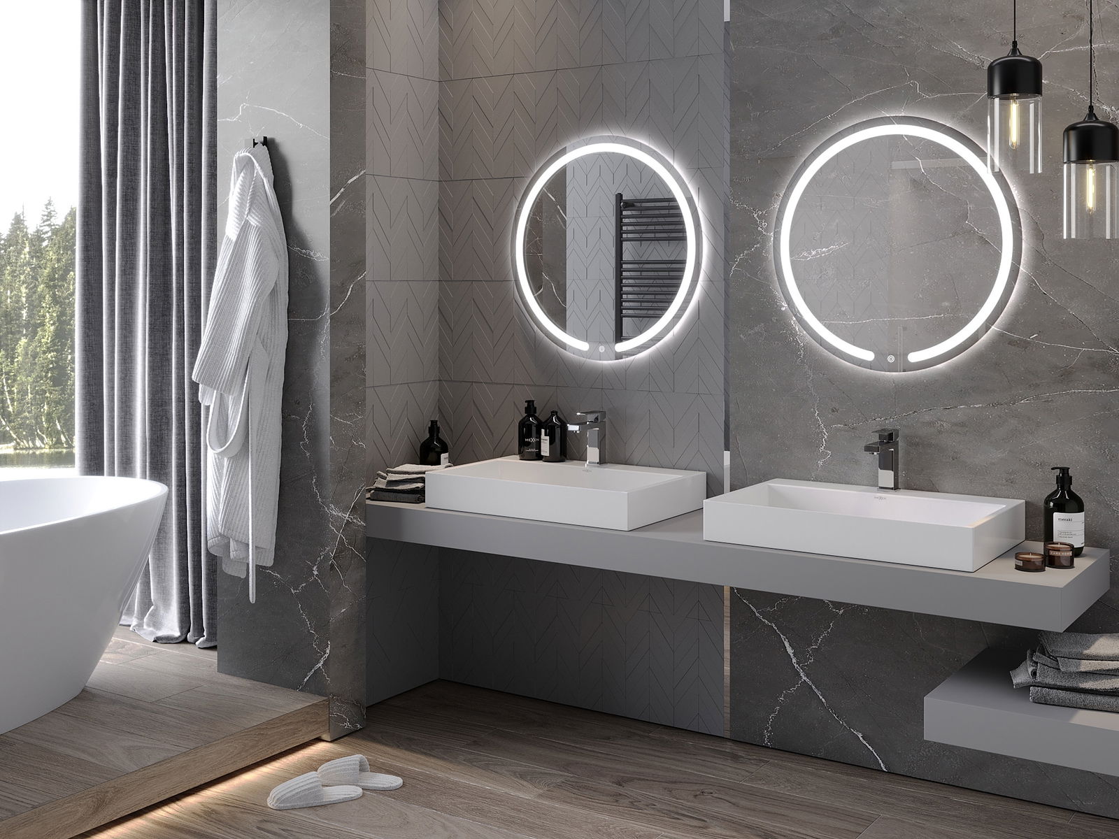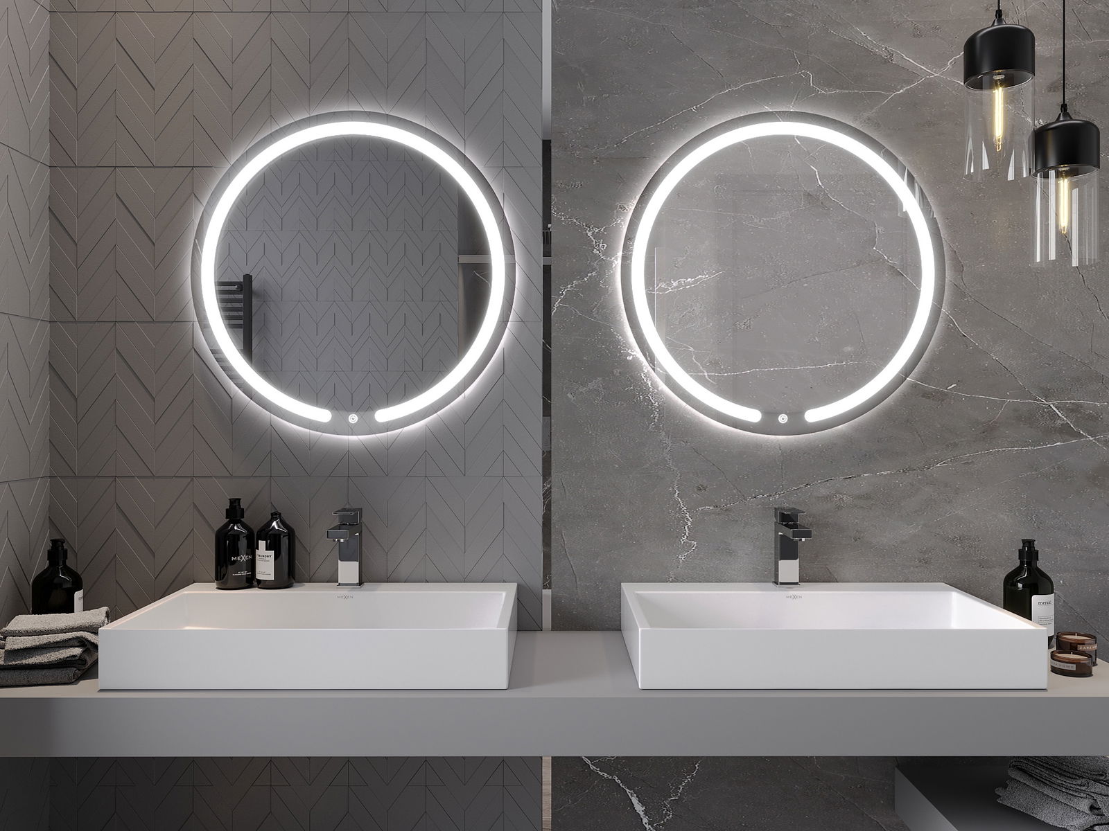 A tükörvilágítás egyszerűen és kényelmes módon indítható a tükör felületén lévő kapcsoló megérintésével. Ez lehetővé teszi a gyors megvilágítást, anélkül, hogy el kellene érnie a további hagyományos világítási kapcsolót.