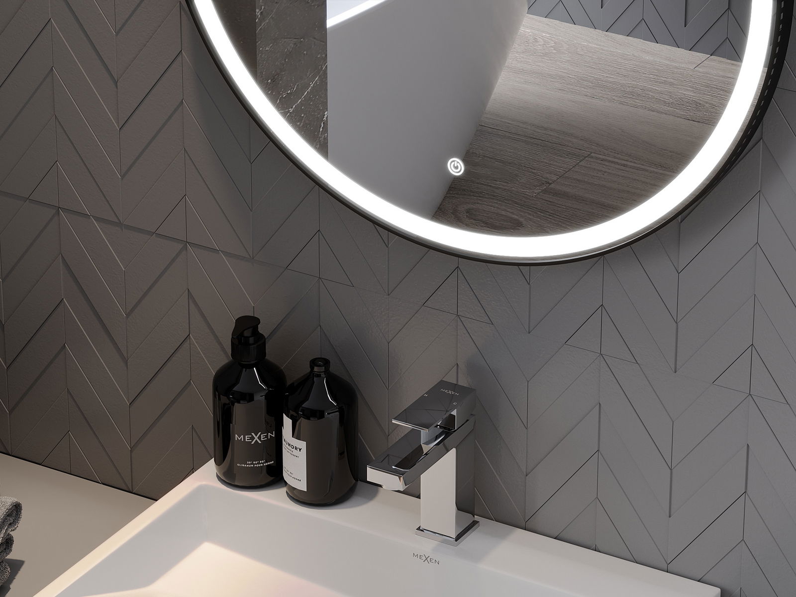 Mexen Reni kör alakú, megvilágított fürdőszobatükör, 100 cm, LED 6000K, páramentes, fekete keretben