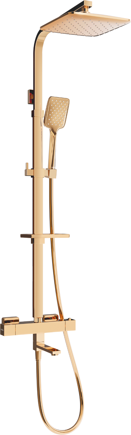 Mexen CQ62 kád-zuhanykészlet esőztetővel és termosztátos csappal, rózsaarany - 779106295-60