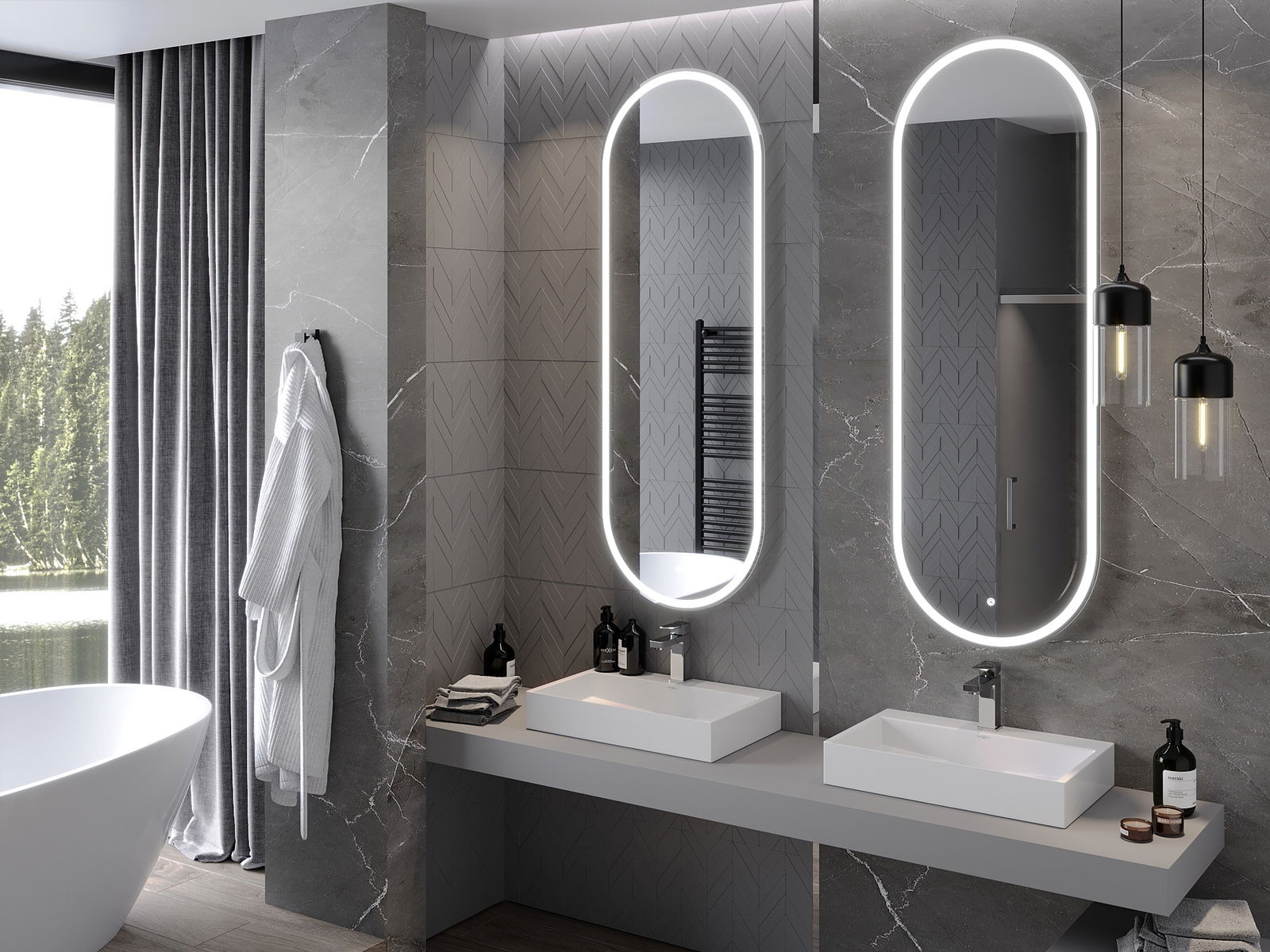 A LED -es háttérvilágítás a tükörnél egy gyakorlati elem, amely megkönnyíti a napi ellátást, az ideális arcvilágítás lehetőségének köszönhetően. A háttérvilágítás modern felületet ad a fürdőszobának, hangsúlyozva elegáns dekorációját.