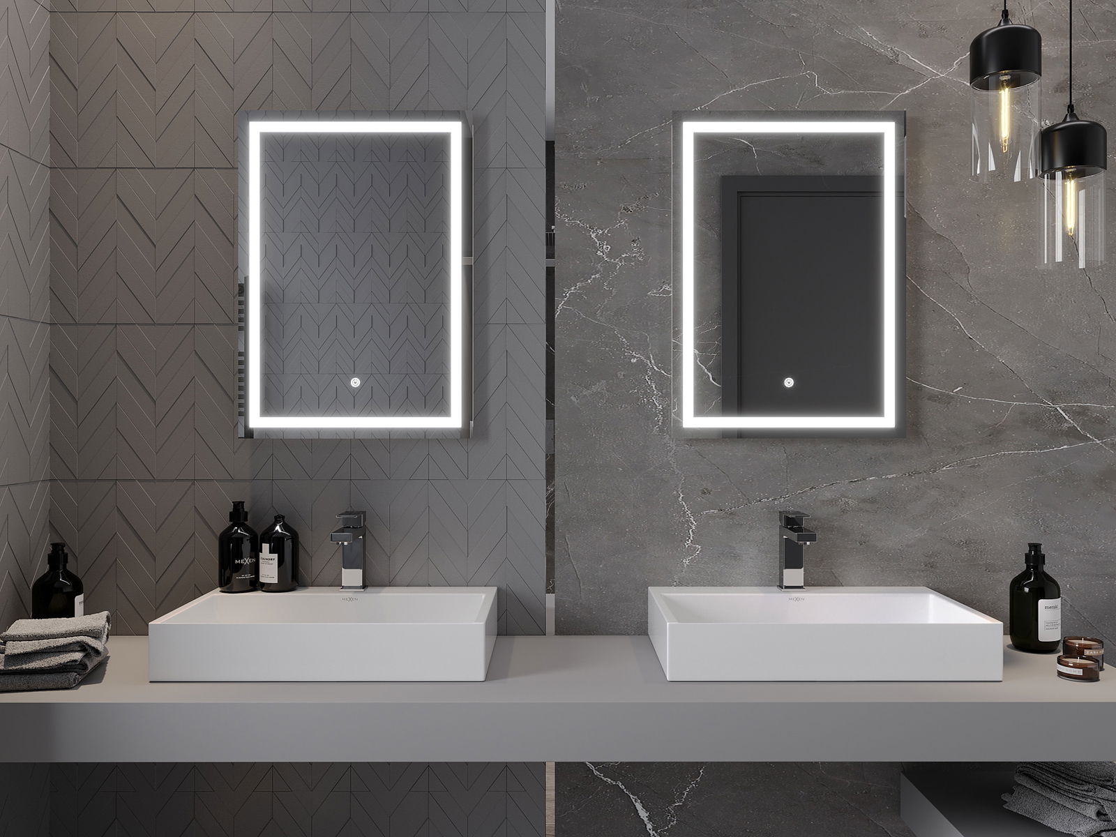 A tükörvilágítás egyszerűen és kényelmes módon indítható a tükör felületén lévő kapcsoló megérintésével. Ez lehetővé teszi a gyors megvilágítást, anélkül, hogy el kellene érnie a további hagyományos világítási kapcsolót.