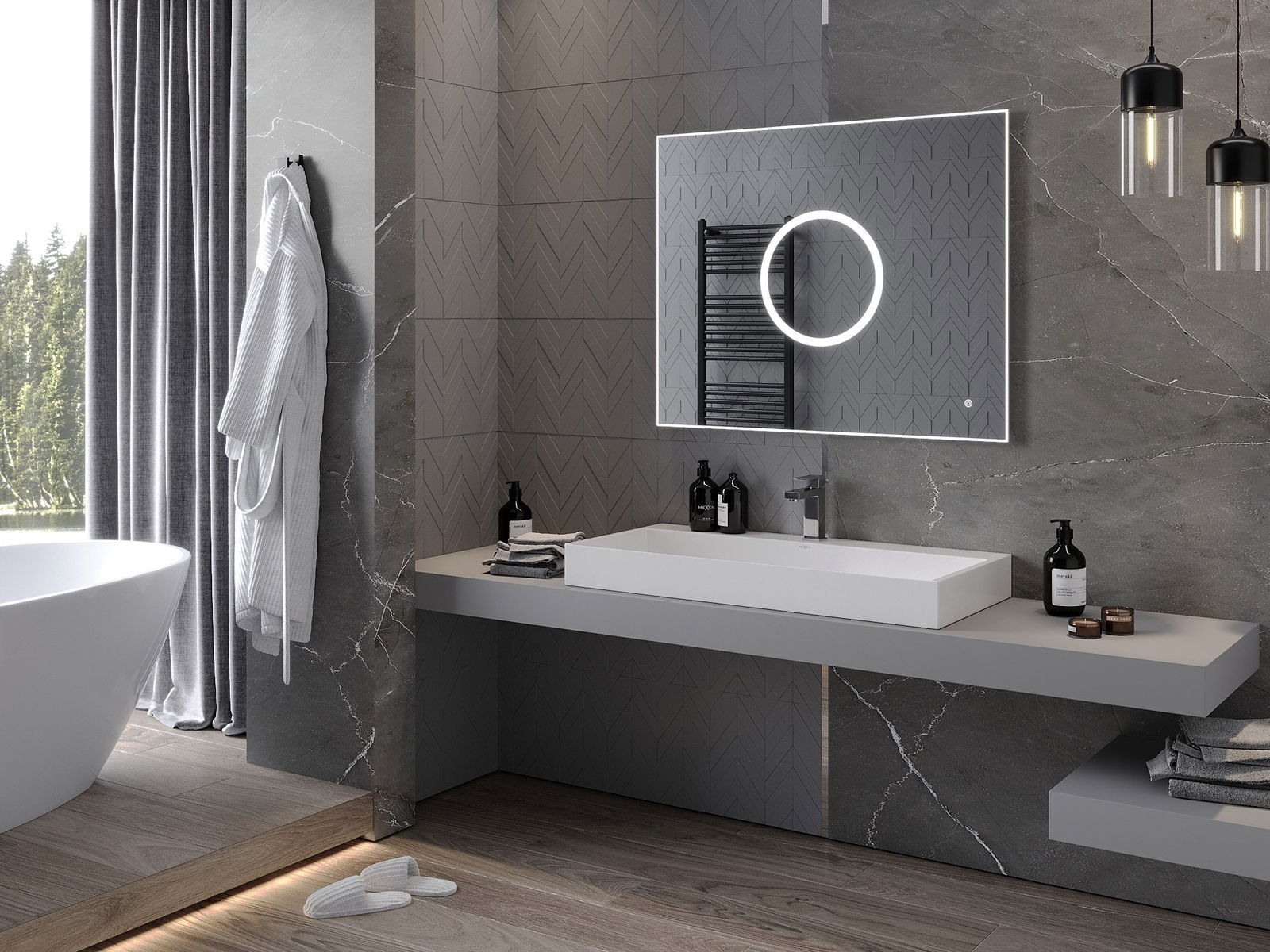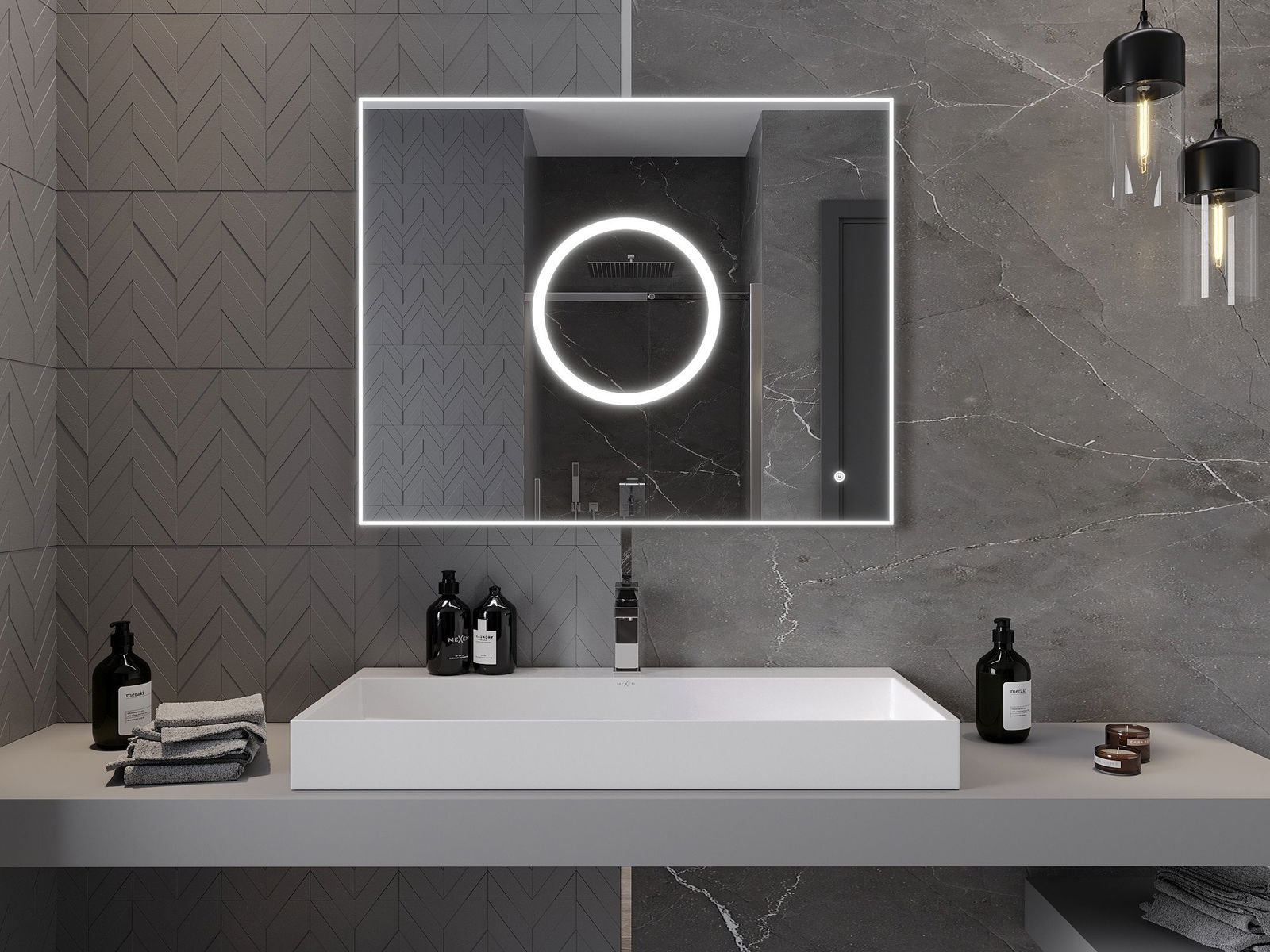 A tükörvilágítás egyszerűen és kényelmes módon indítható a tükör felületén lévő kapcsoló megérintésével. Ez lehetővé teszi a gyors megvilágítást, anélkül, hogy el kellene érnie a további hagyományos világítási kapcsolót.