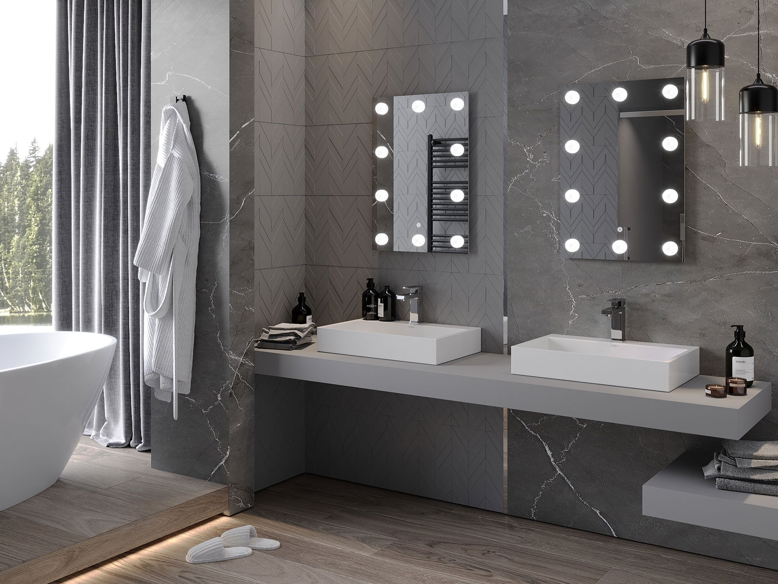 A tükörvilágítás egyszerűen és kényelmes módon indítható a tükör felületén lévő kapcsoló megérintésével. Ez lehetővé teszi a gyors megvilágítást, anélkül, hogy el kellene érnie a további hagyományos világítási kapcsolót.