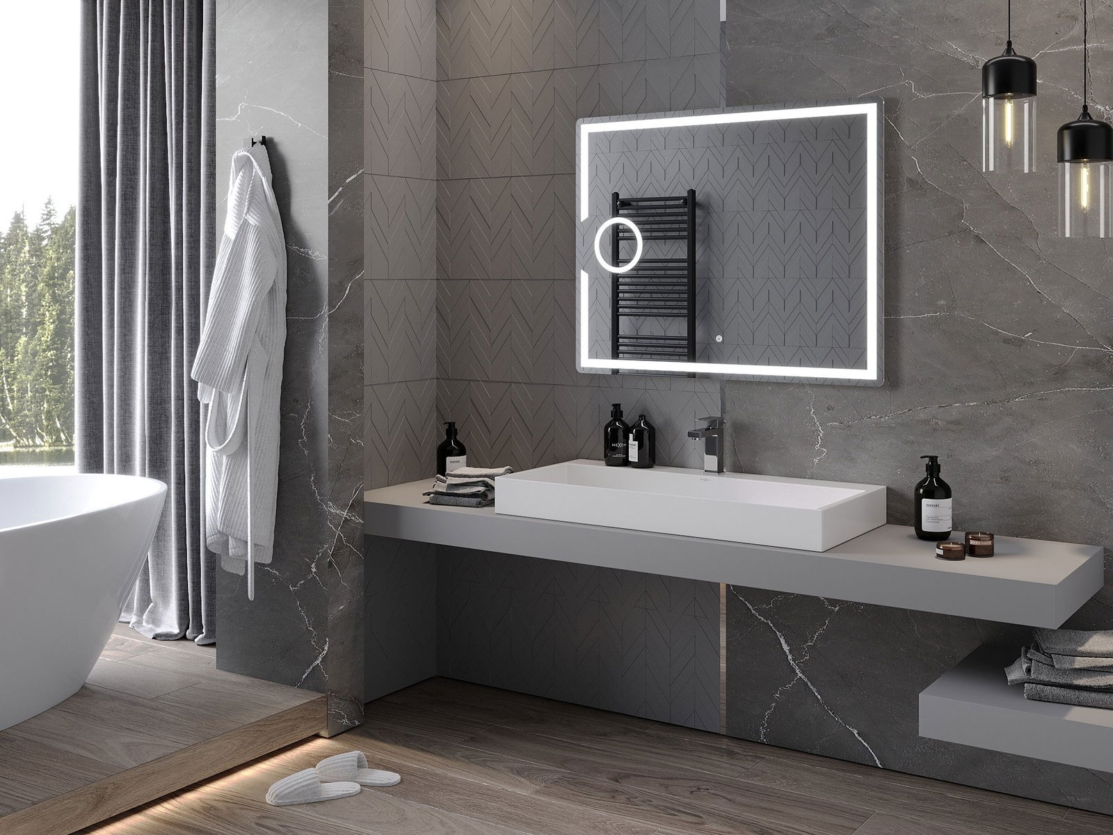 A tükörvilágítás egyszerűen és kényelmes módon indítható a tükör felületén lévő kapcsoló megérintésével. Ez lehetővé teszi a gyors megvilágítást, anélkül, hogy el kellene érnie a további hagyományos világítási kapcsolót.