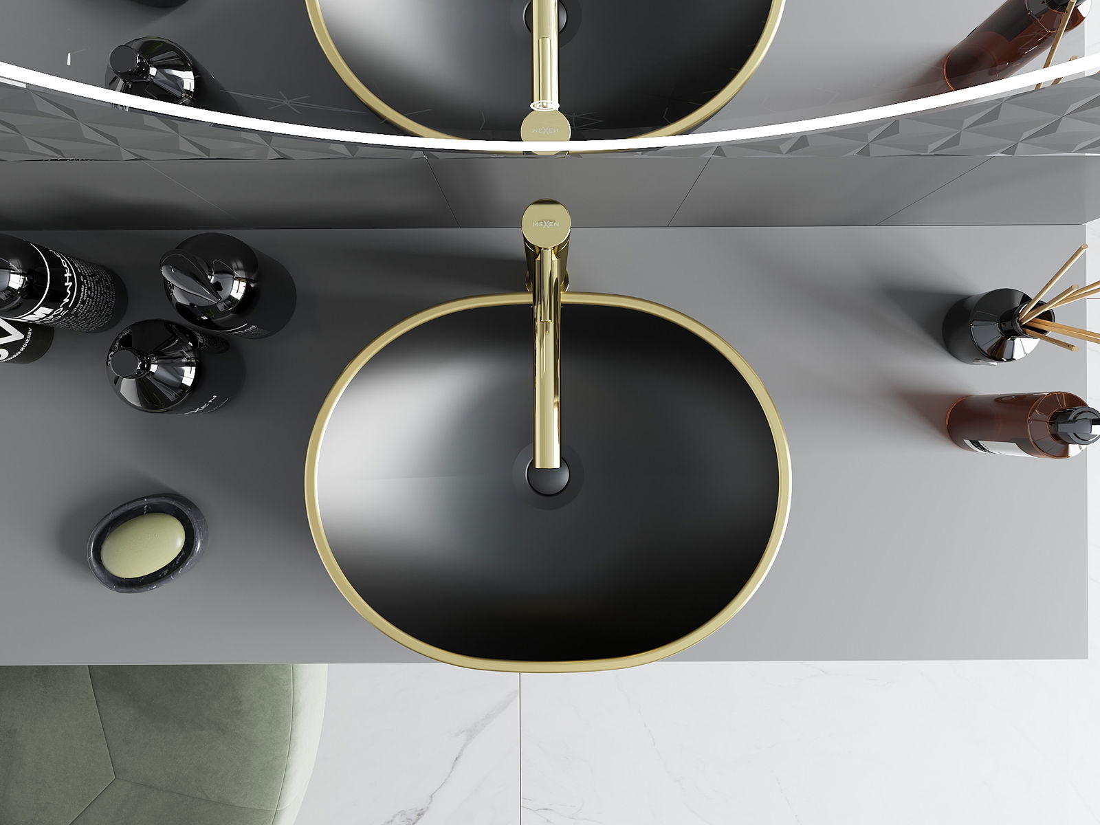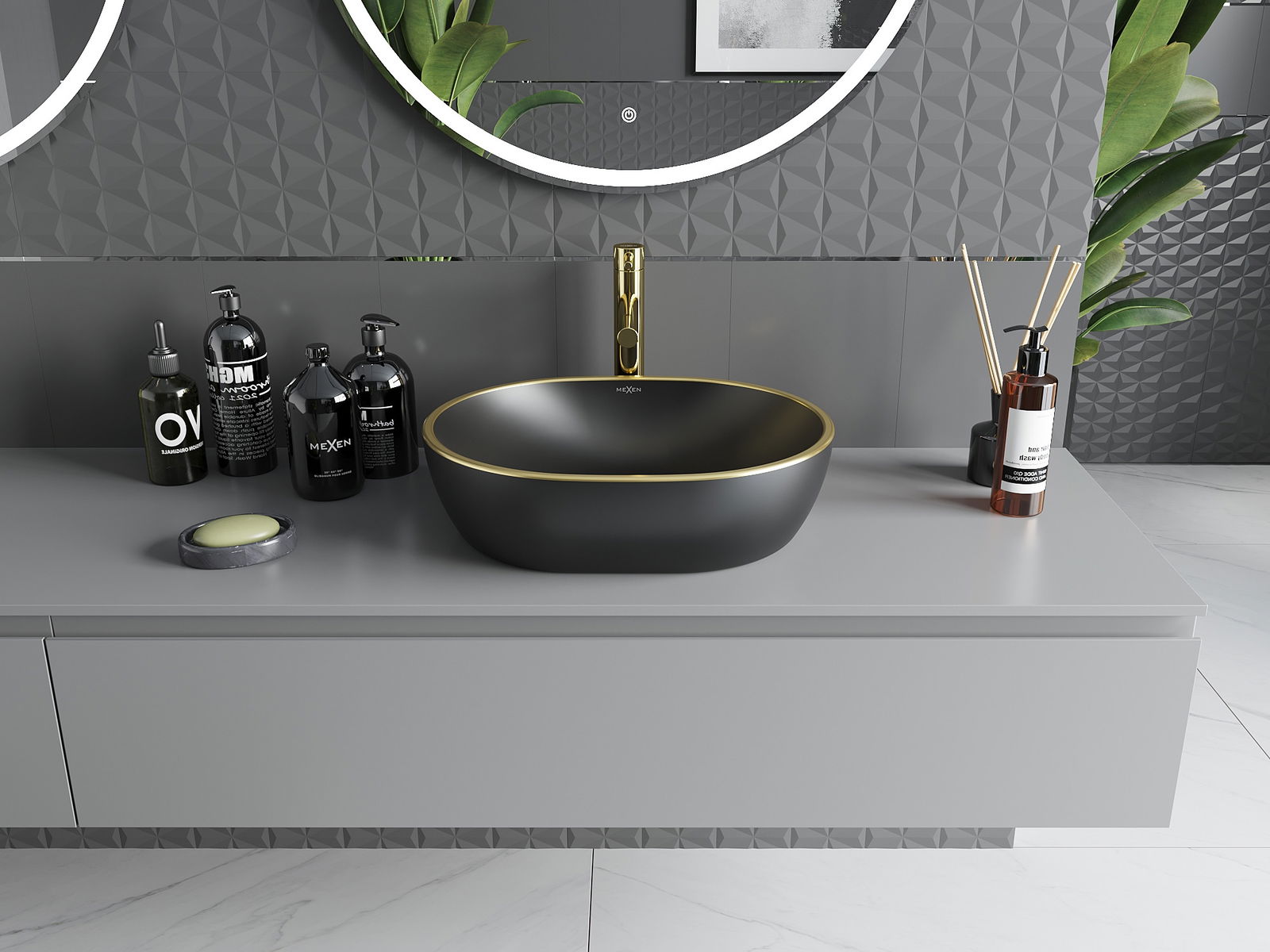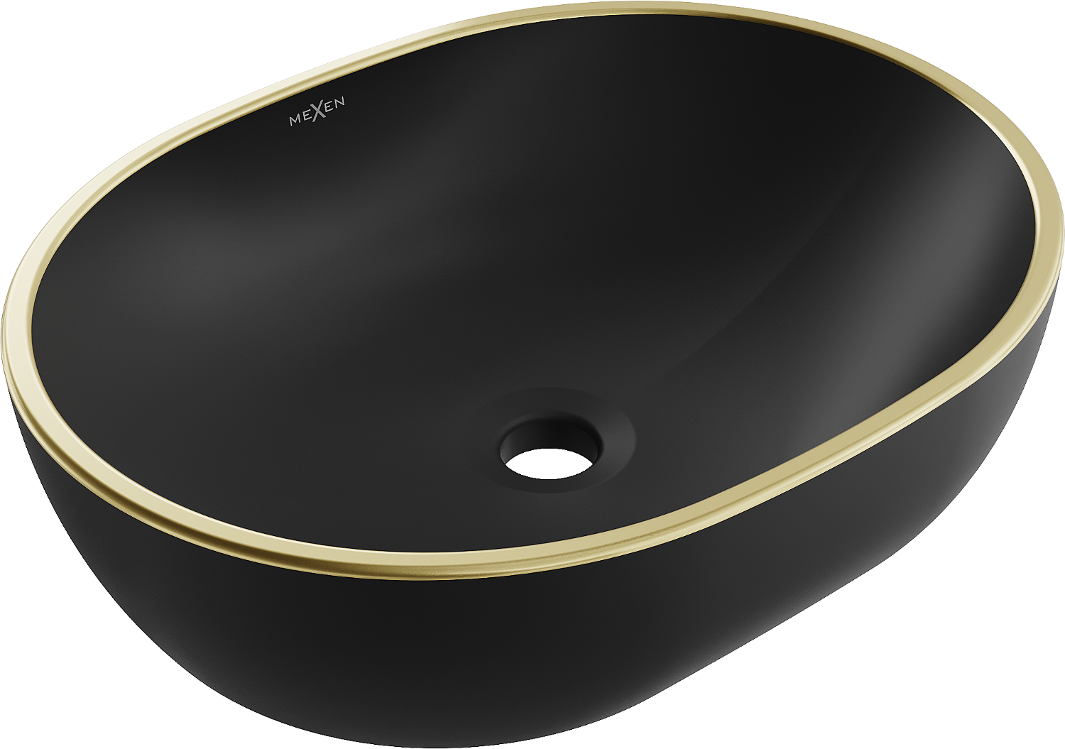 Mexen Viki 48 x 35 cm-es, fekete matt/arany peremű pultra szerelhető mosdókagyló - 21054875
