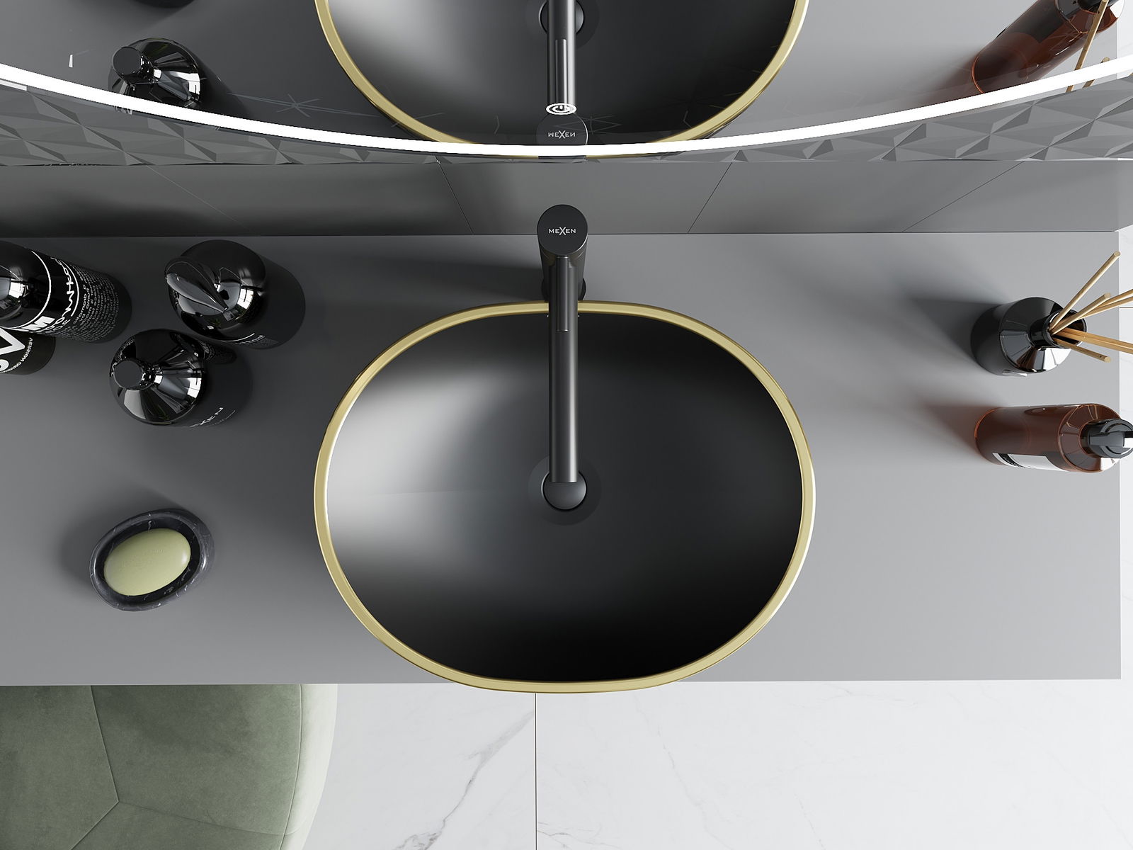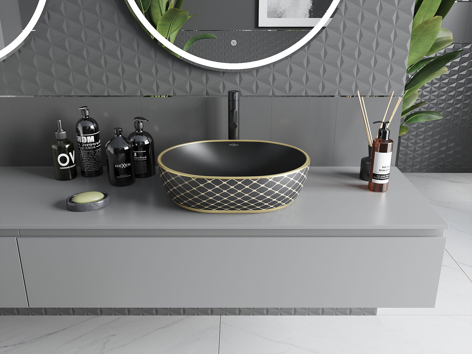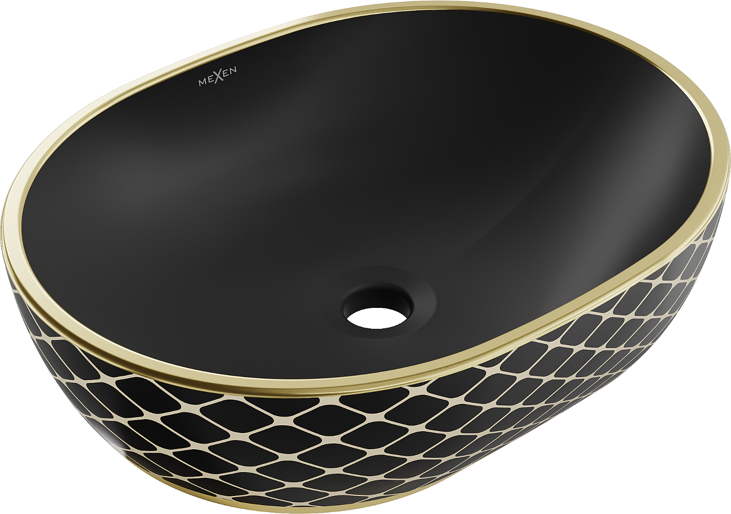 Mexen Viki mosdókagyló munkalapra helyezett 48 x 35 cm, fekete matt/arany kocka minta - 21054879
