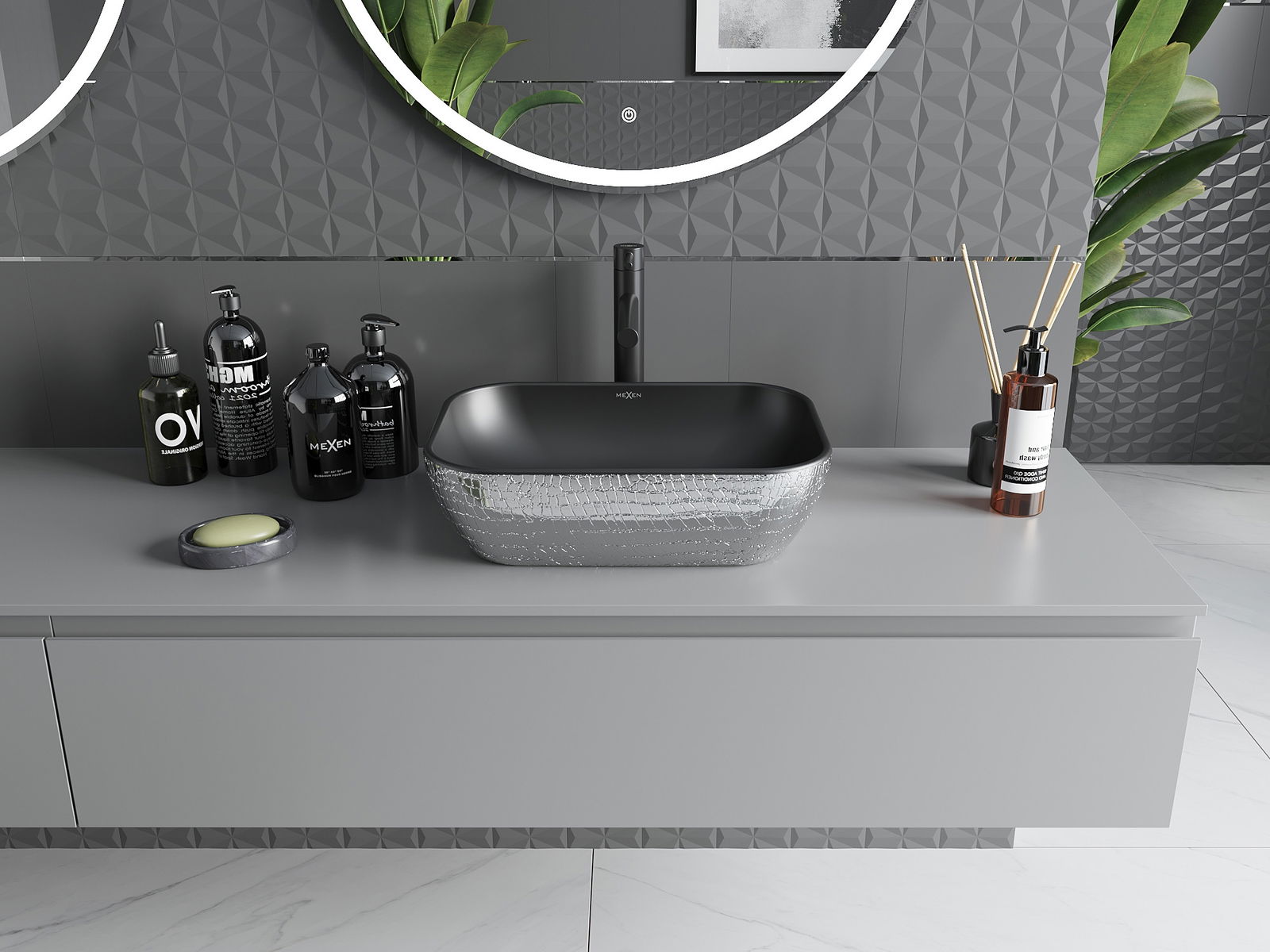 A kerámia matt felülete tökéletesen hangsúlyozza a termék színének természetét, így egyedi és kifejező felületet biztosít. A matt kerámia finom szerkezete eleganciát vezet be a fürdőszobában, esztétikai teret teremtve.
