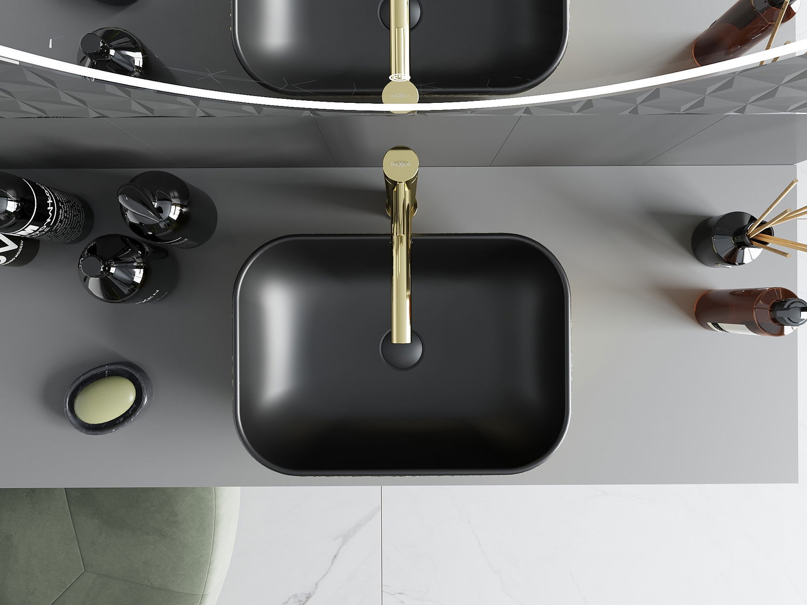 A kerámia matt felülete tökéletesen hangsúlyozza a termék színének természetét, így egyedi és kifejező felületet biztosít. A matt kerámia finom szerkezete eleganciát vezet be a fürdőszobában, esztétikai teret teremtve.